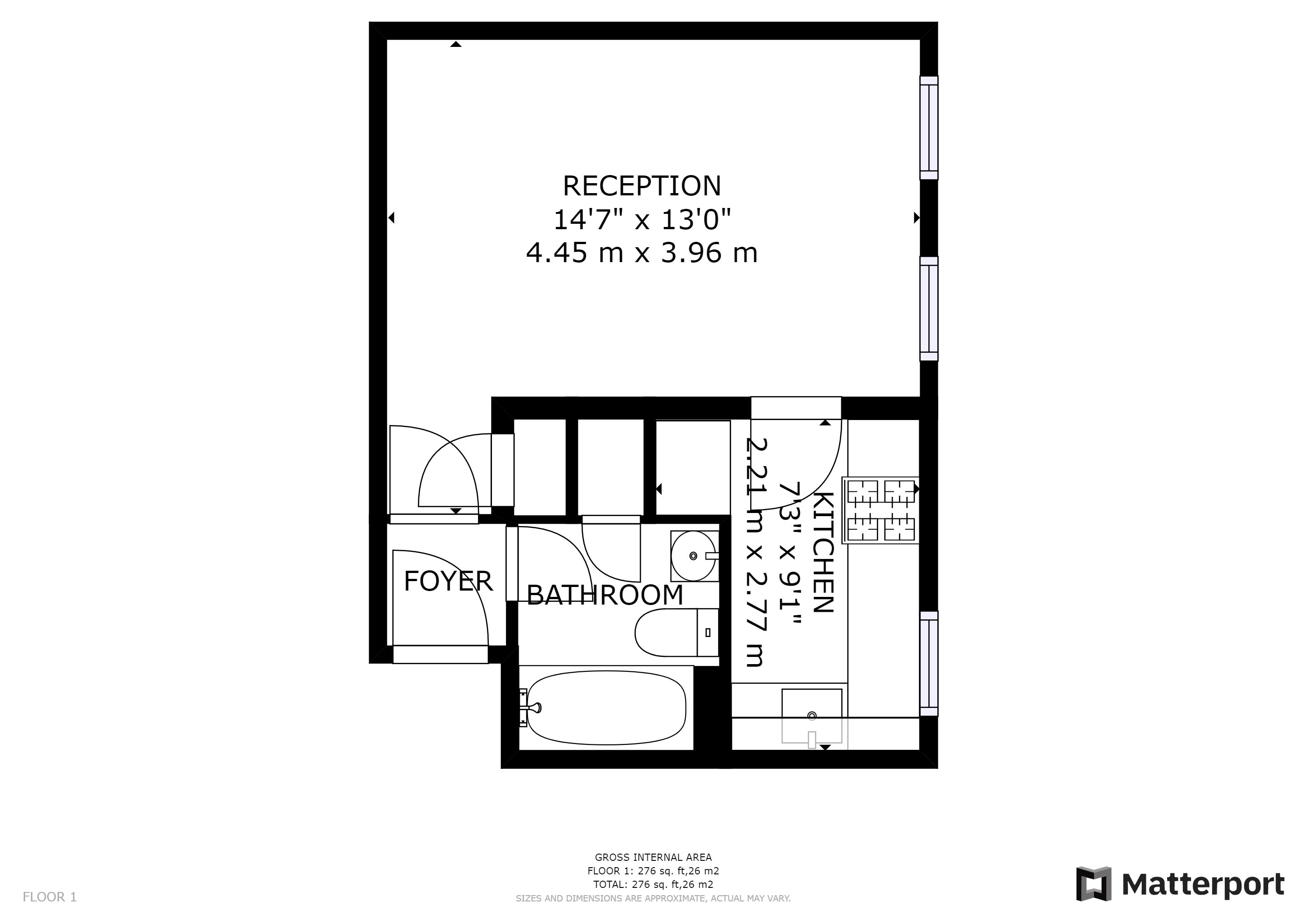 Ground Floor:Entrance, lounge/bedroom, kitchen, bathroom