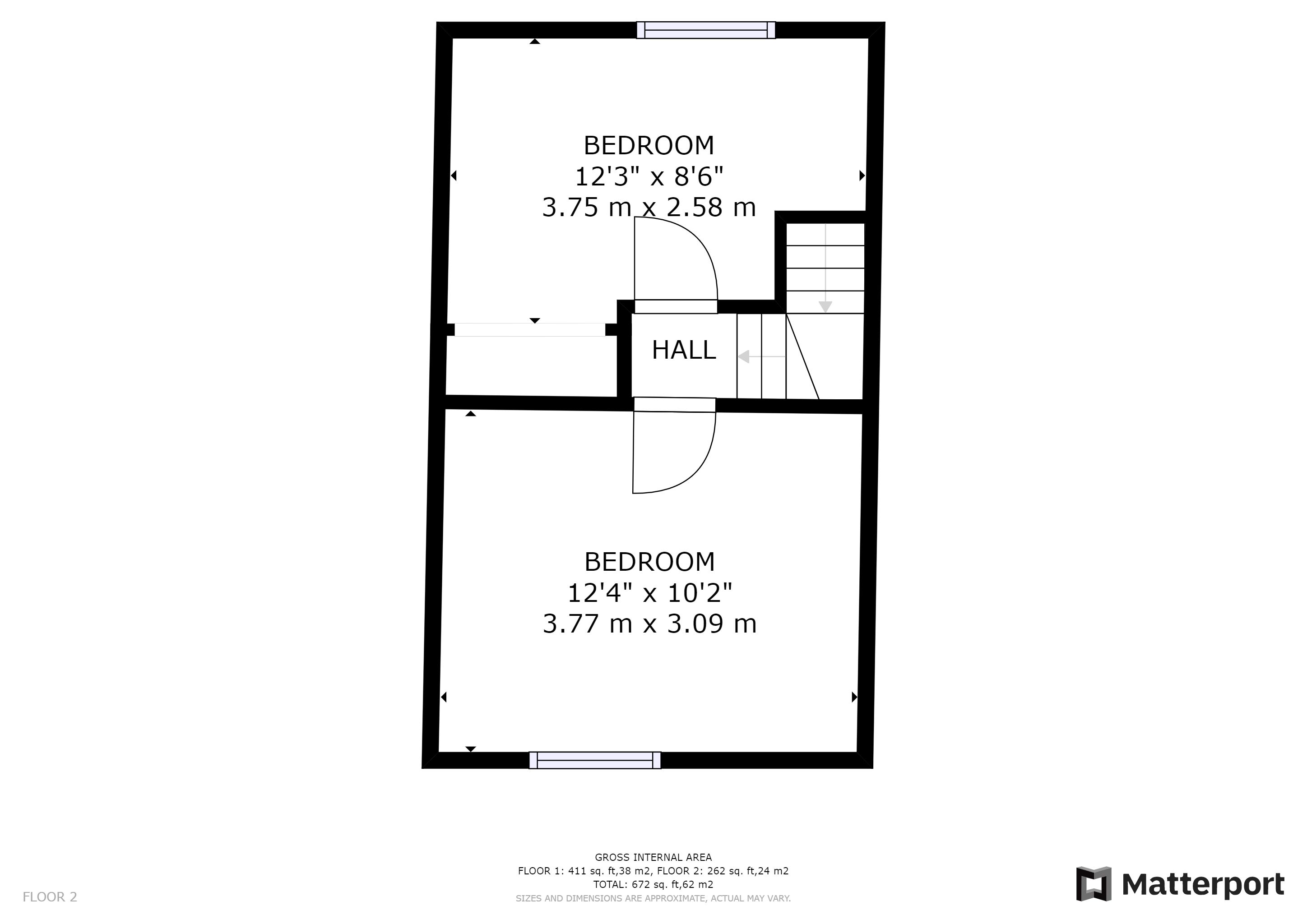 First Floor: Landing, 2 bedrooms (may offer scope to reconfigure to include wc or shower room)