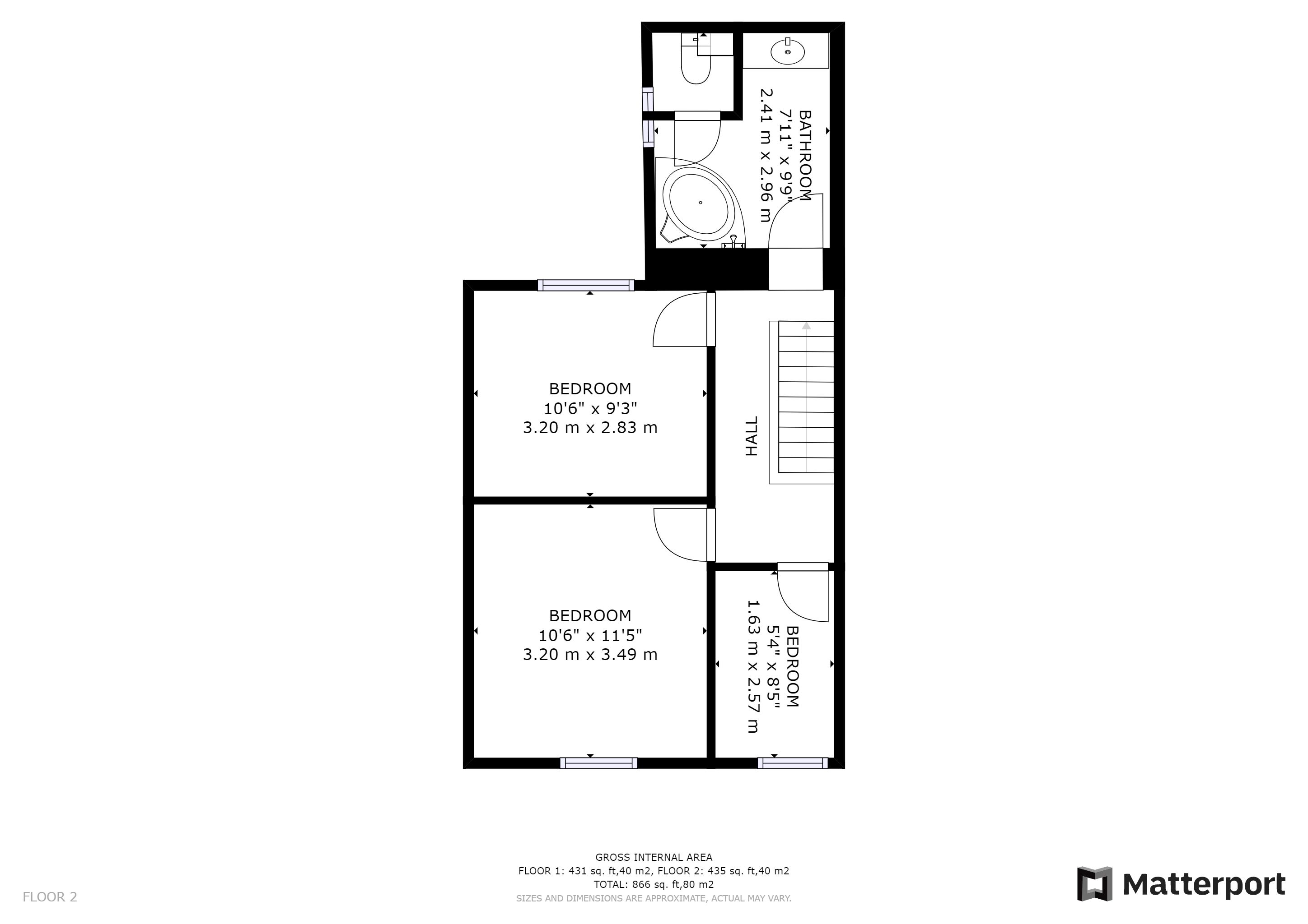 First Floor: Landing, 3 bedrooms, bathroom