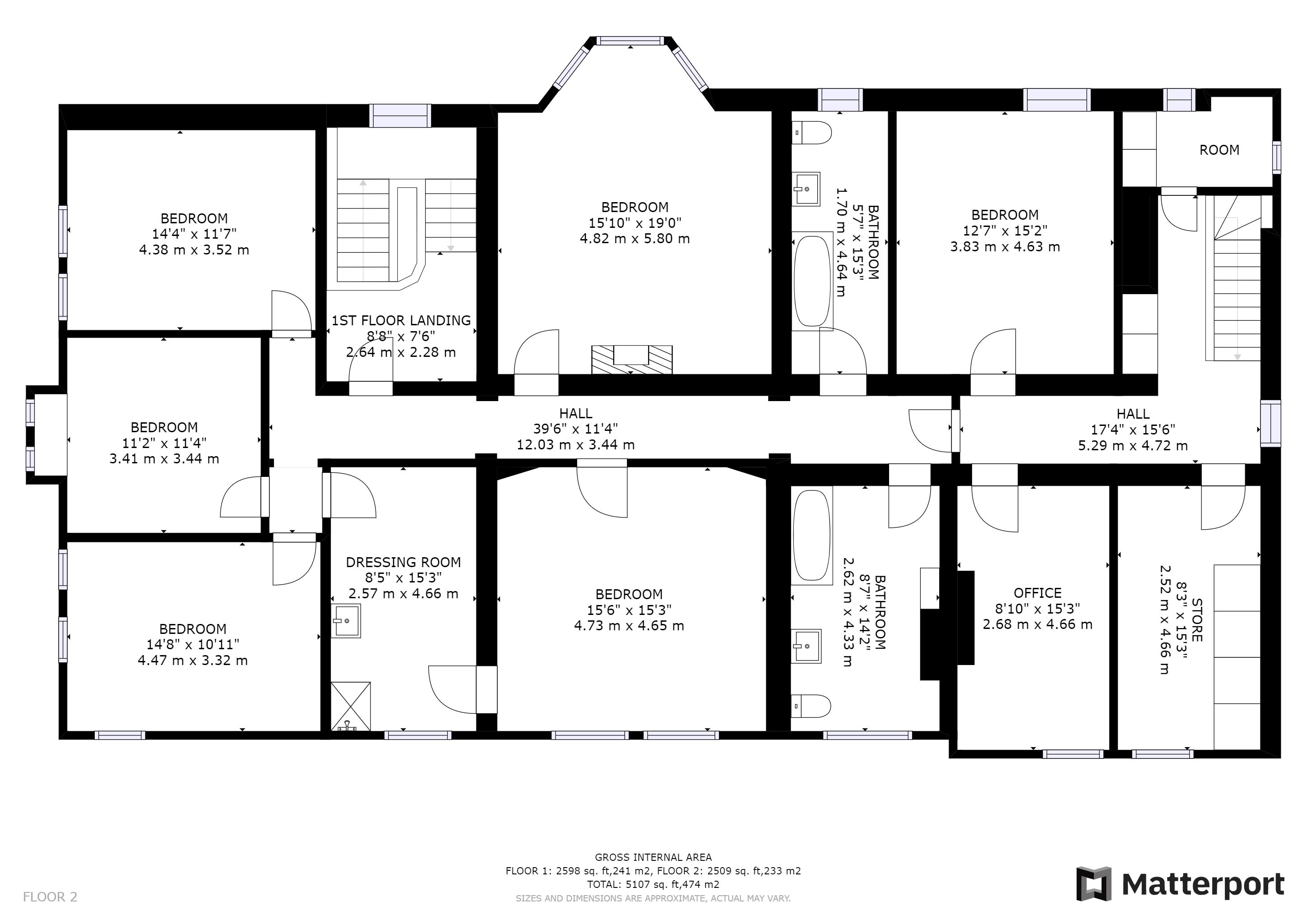 First Floor: 6 bedrooms, walk in wardrobe/ensuite, two bathrooms, library, maid's cupboard, boiler room