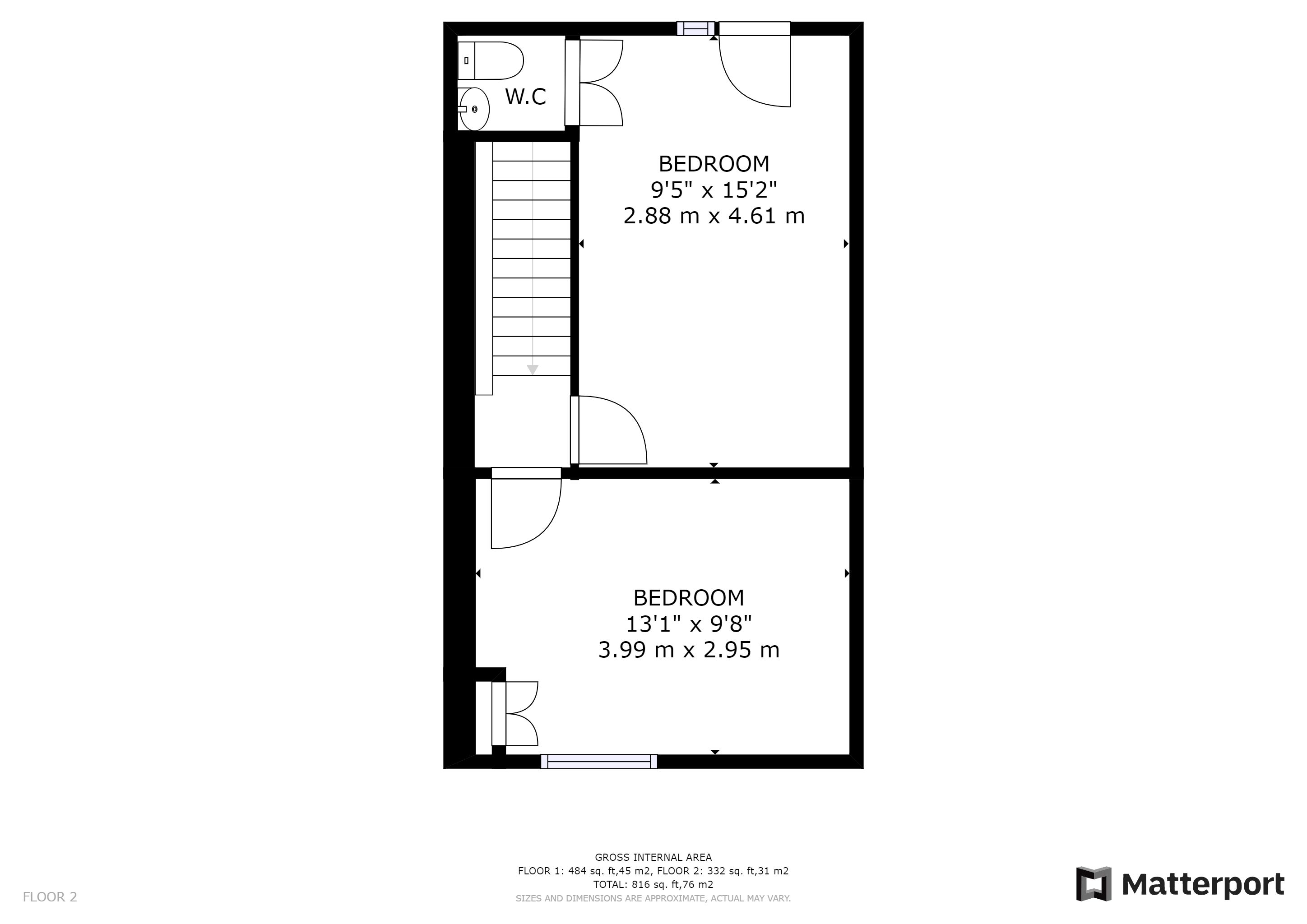 First Floor: Bedroom with wc, bedroom, door to roof space.