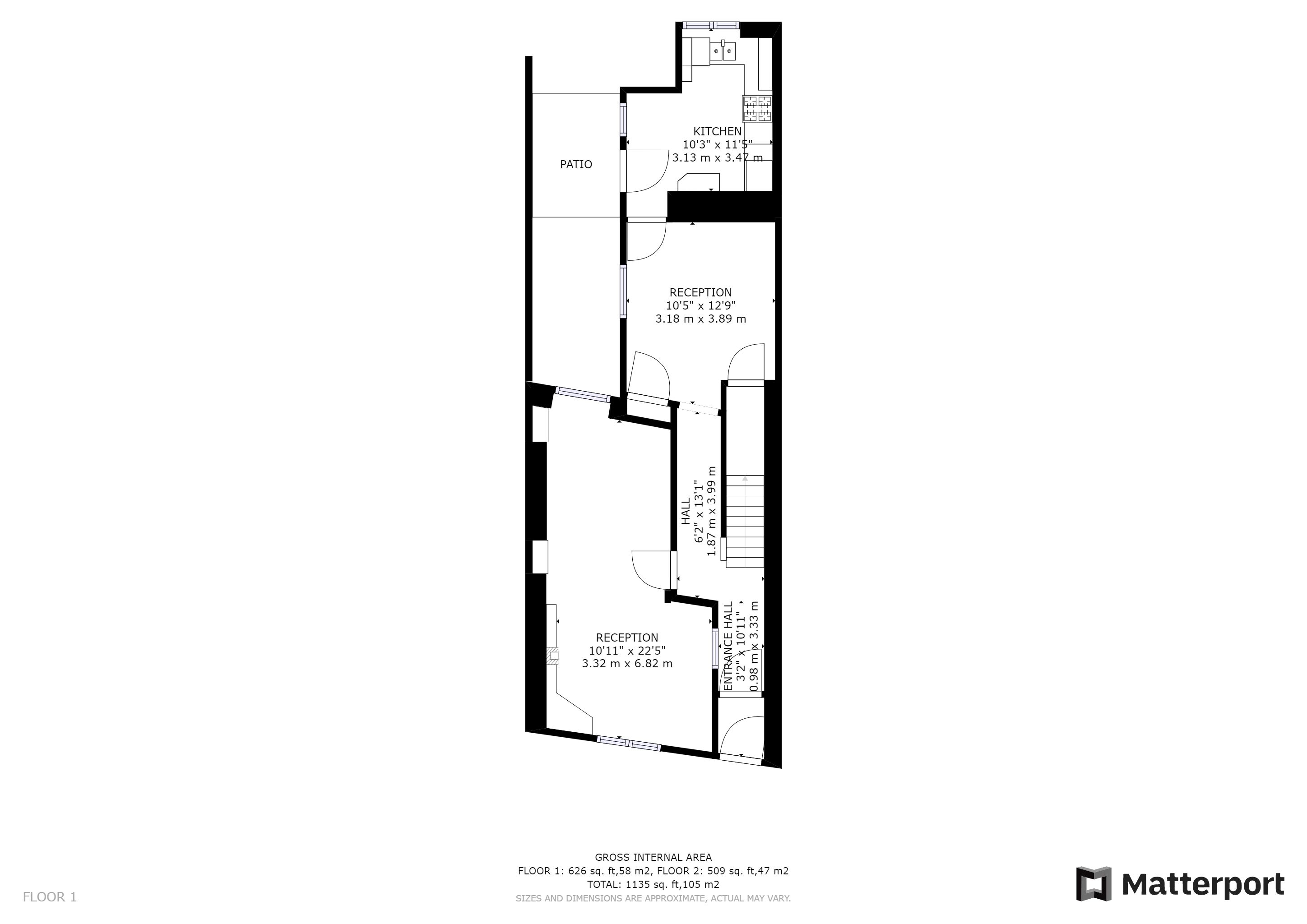 Ground Floor: Entrance hallway, 2 reception rooms, kitchen