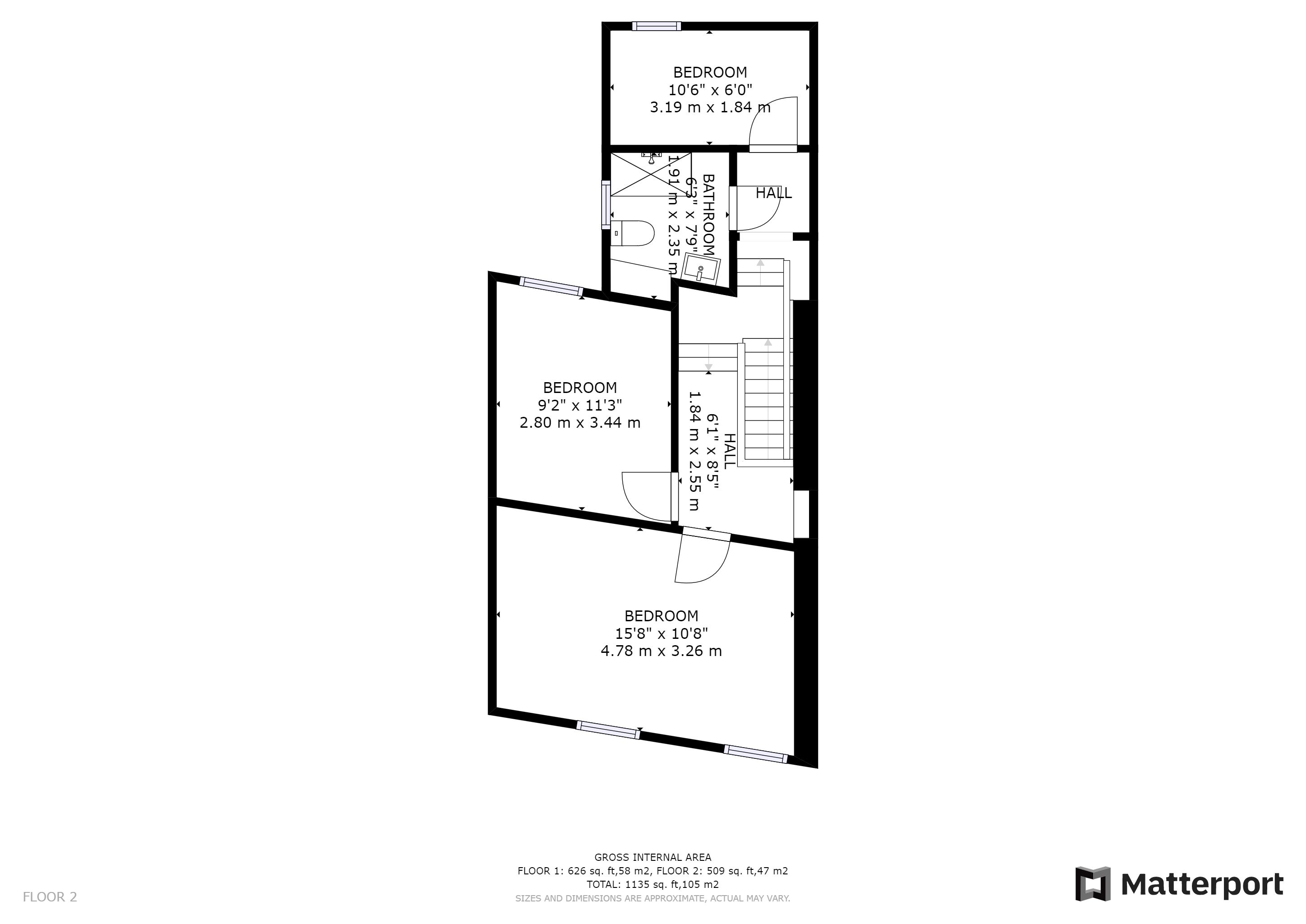 First Floor : 3 bedrooms, shower room