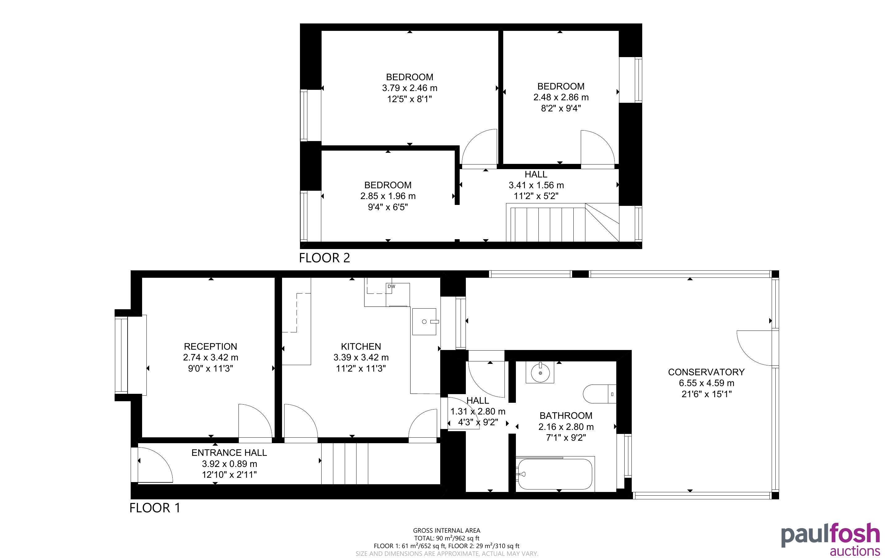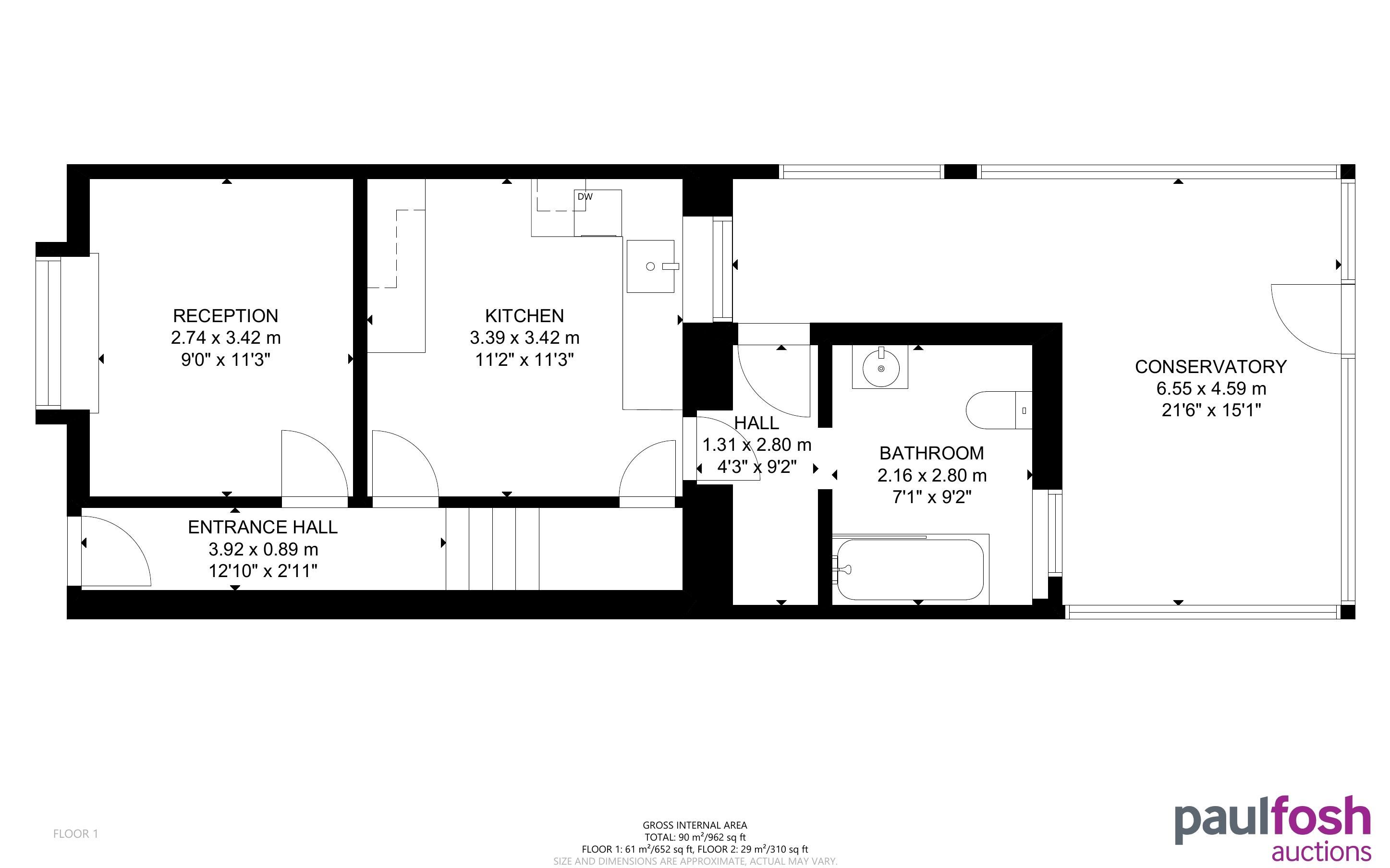Ground Floor: Entrance, kitchen, bathroom, conservatory