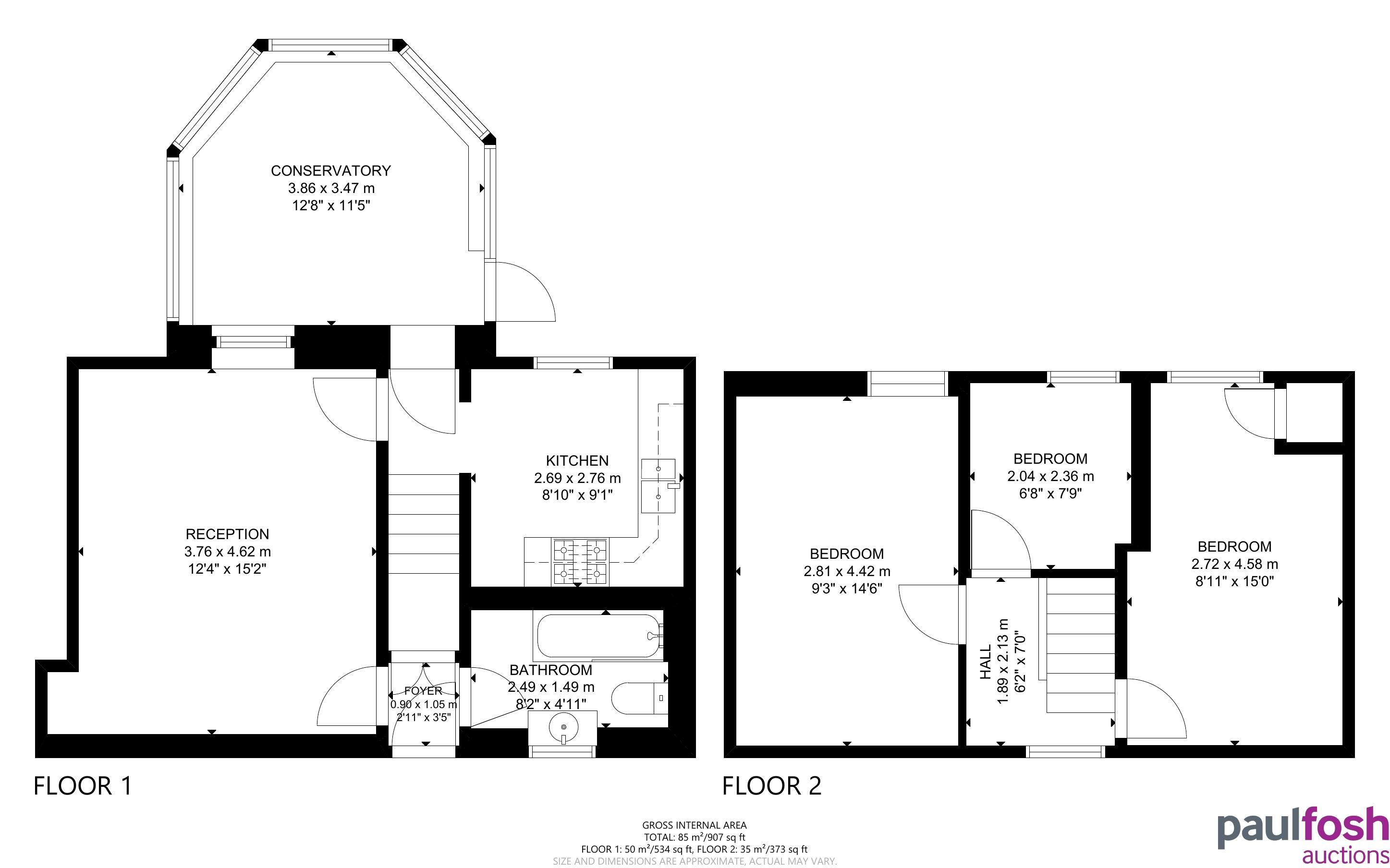Ground Floor: Lounge, kitchen, conservatory, bathroom