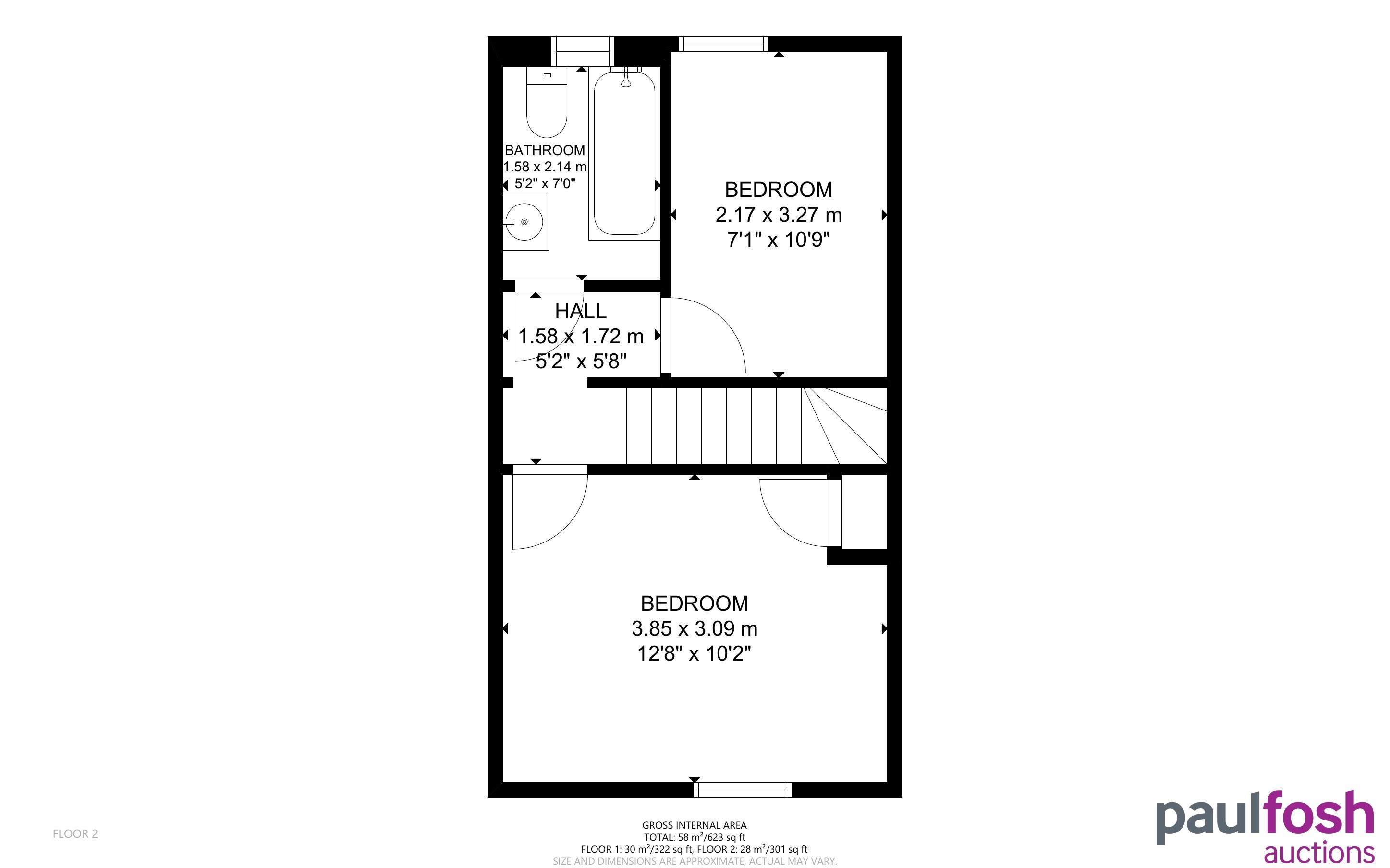 First Floor: Landing, 2 bedrooms, bathroom