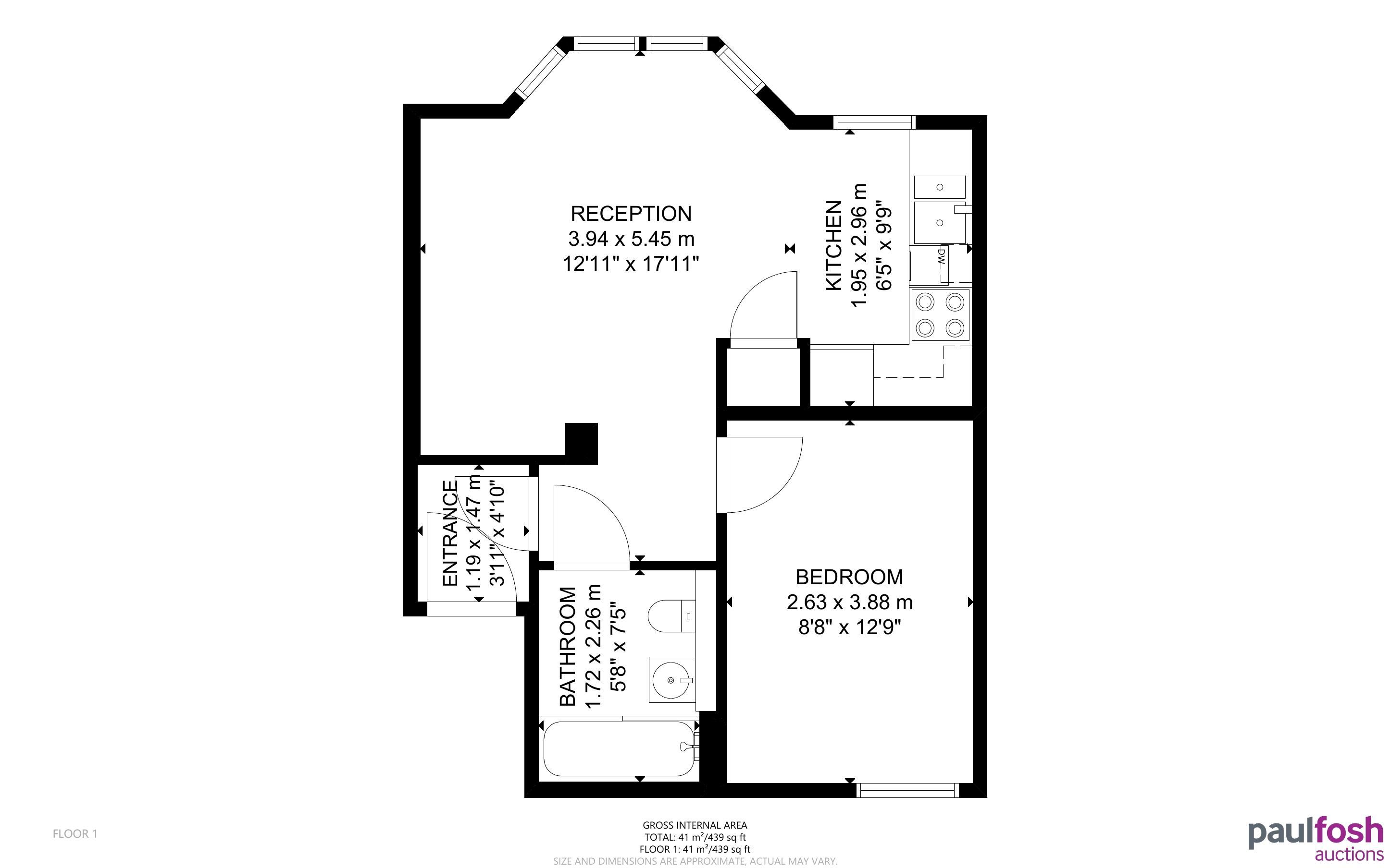 First Floor: Entrance hall, lounge/kitchen double bedroom, bathroom