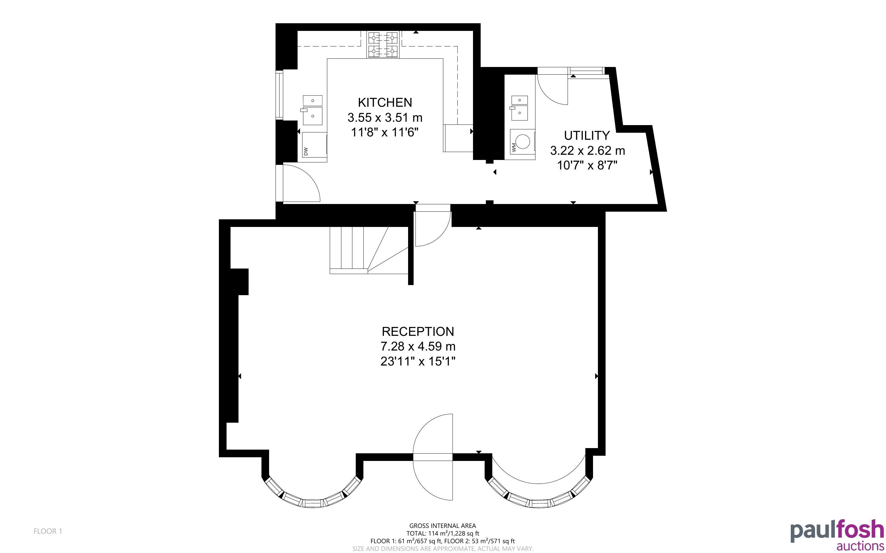 Ground Floor: Lounge, kitchen, utility