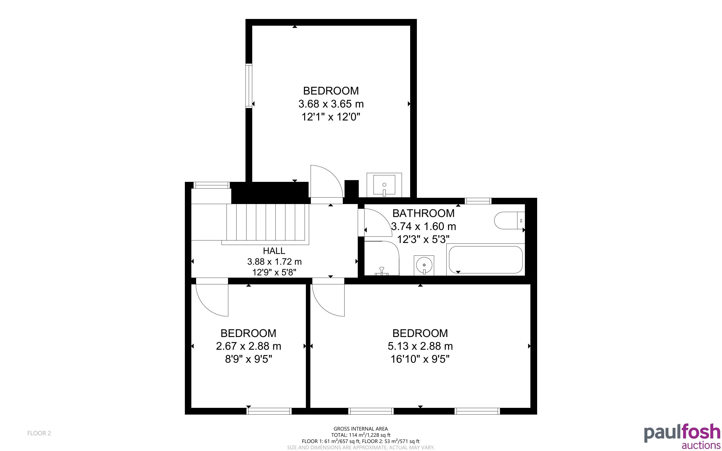 First Floor: 3 bedrooms, bathroom