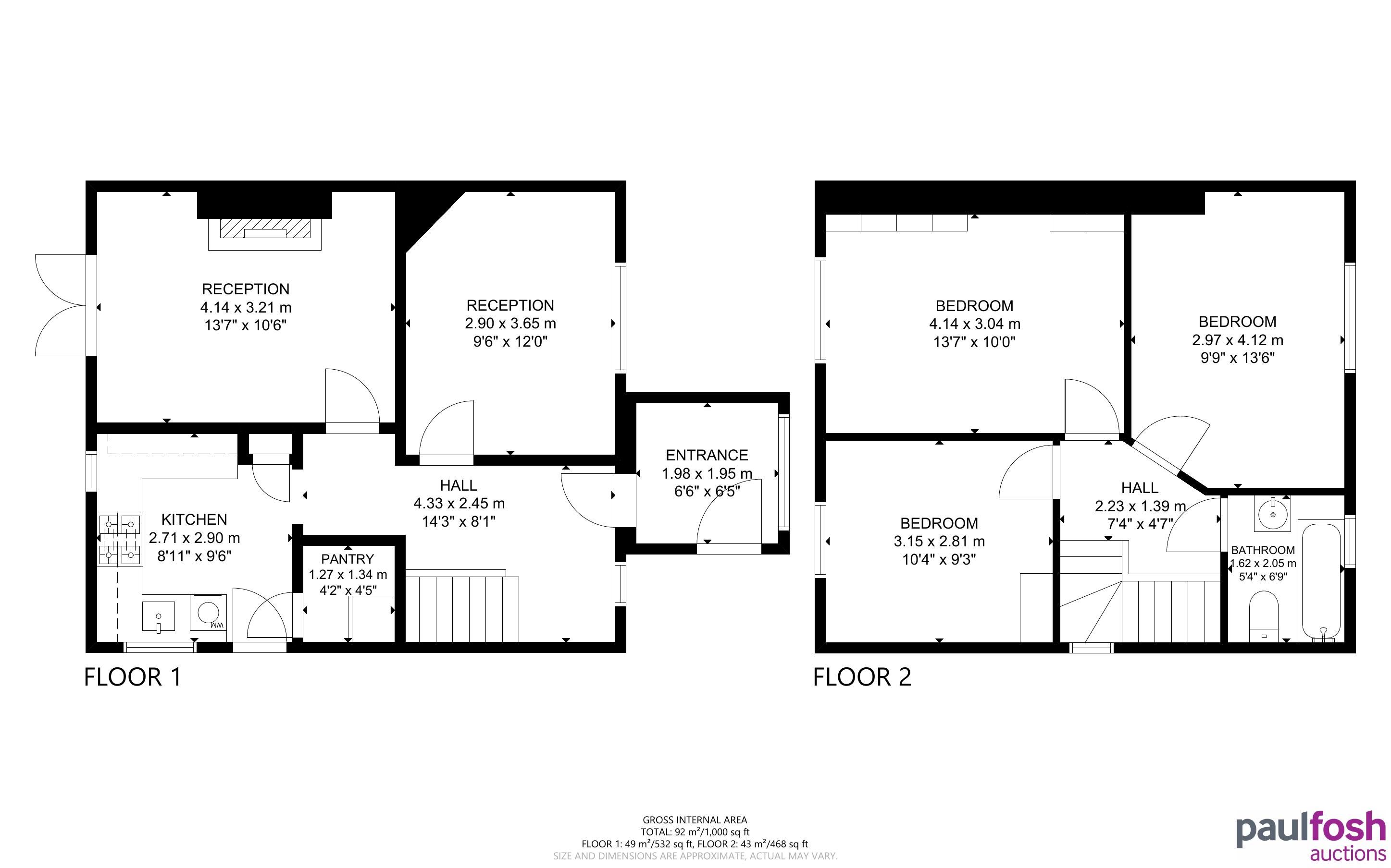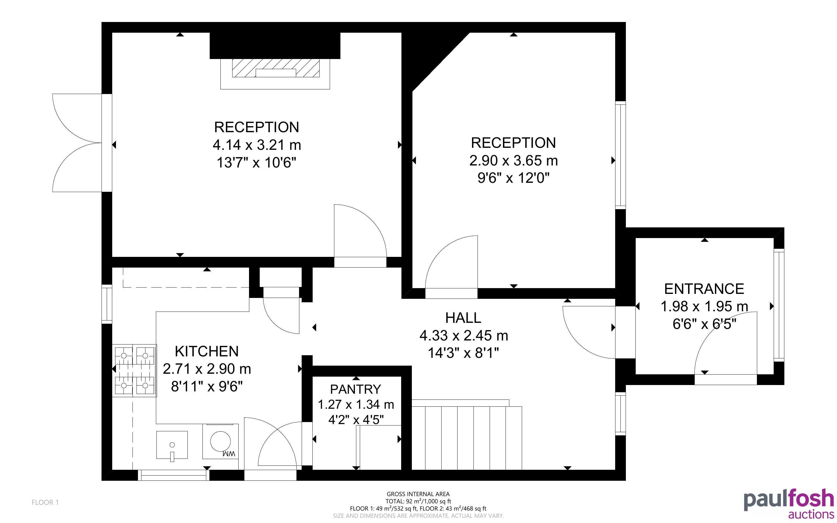 Ground Floor: Entrance porch, hallway, 2 reception rooms, kitchen