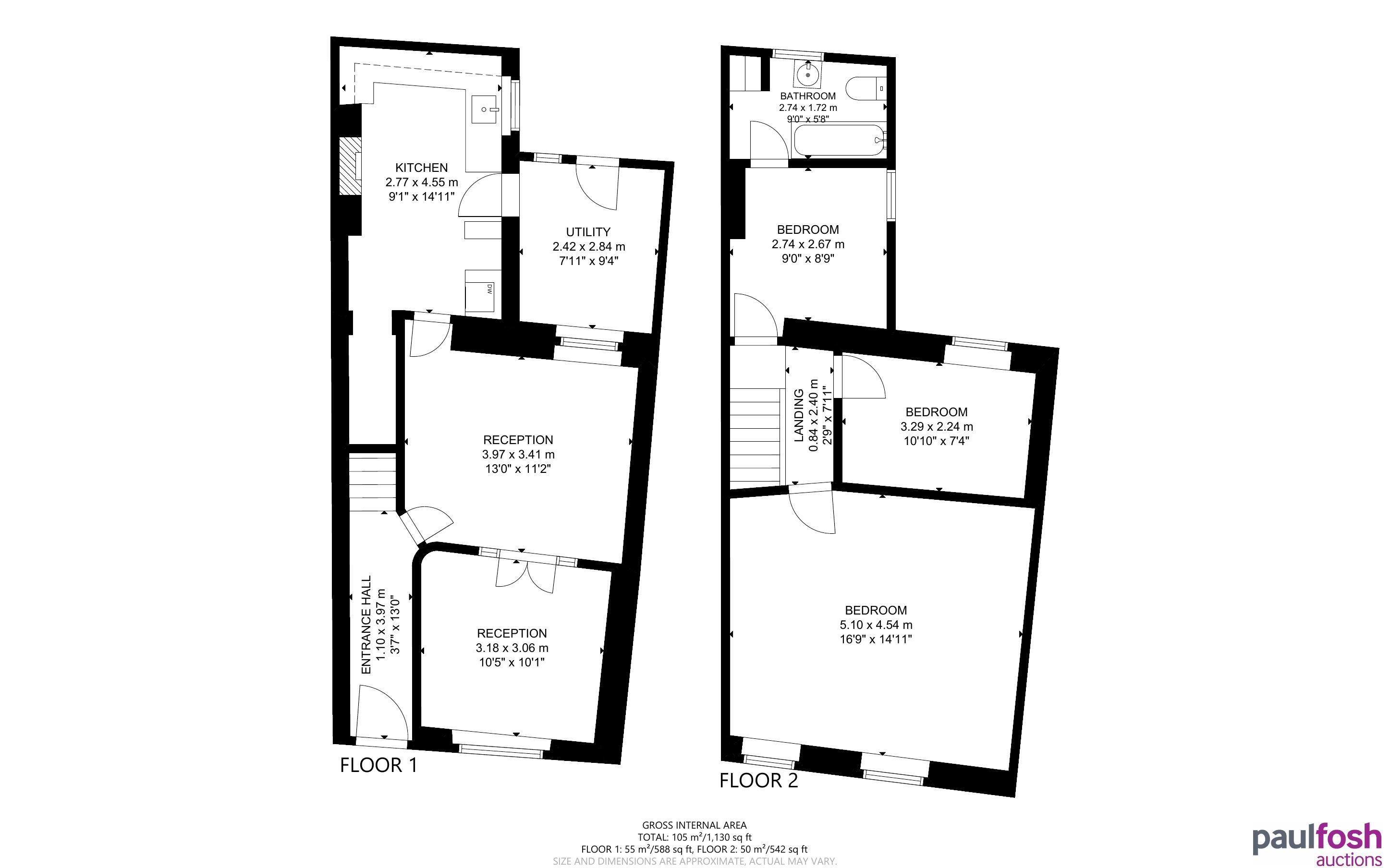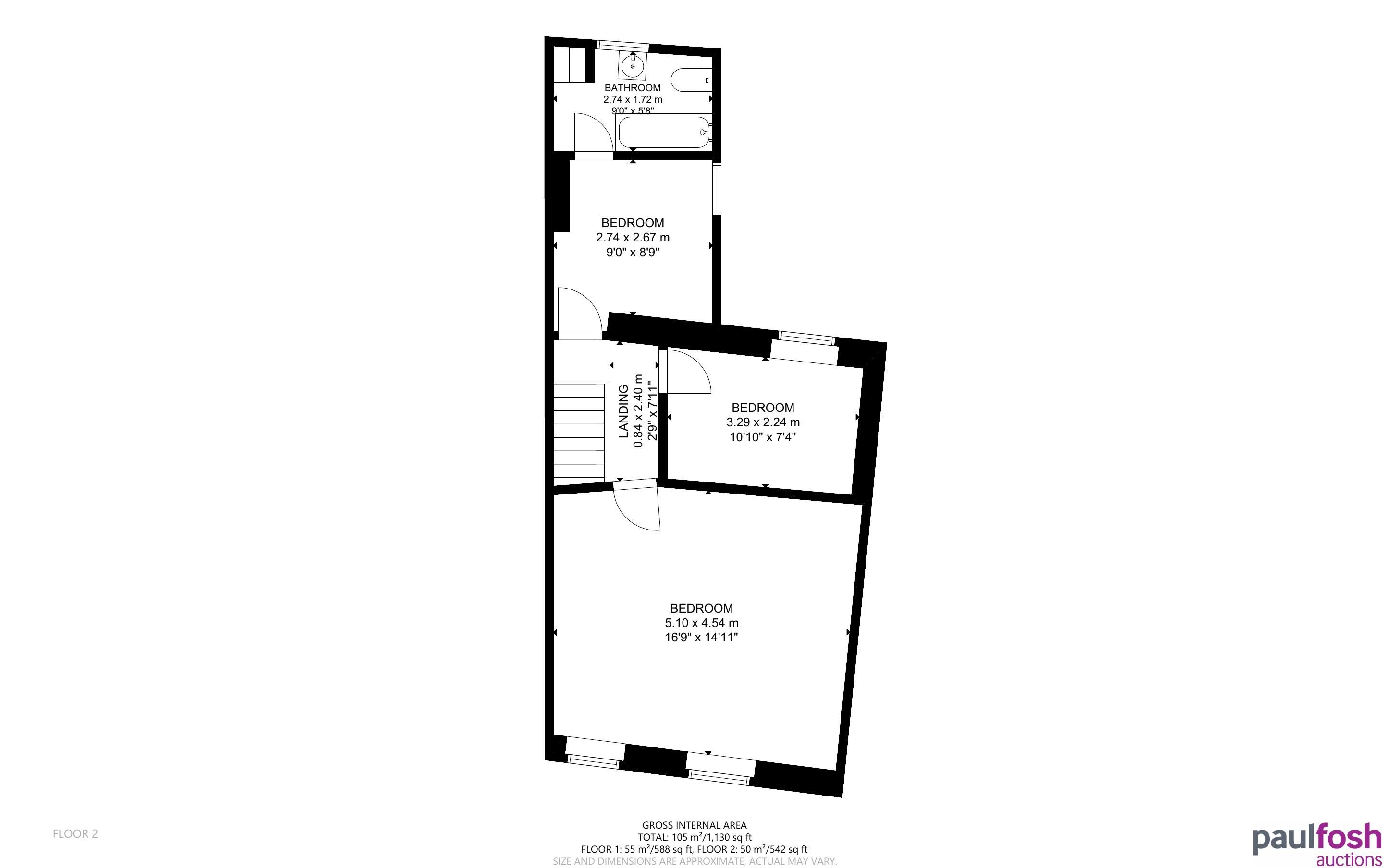 First Floor: Landing, 2 bedrooms (scope for 3), bathroom