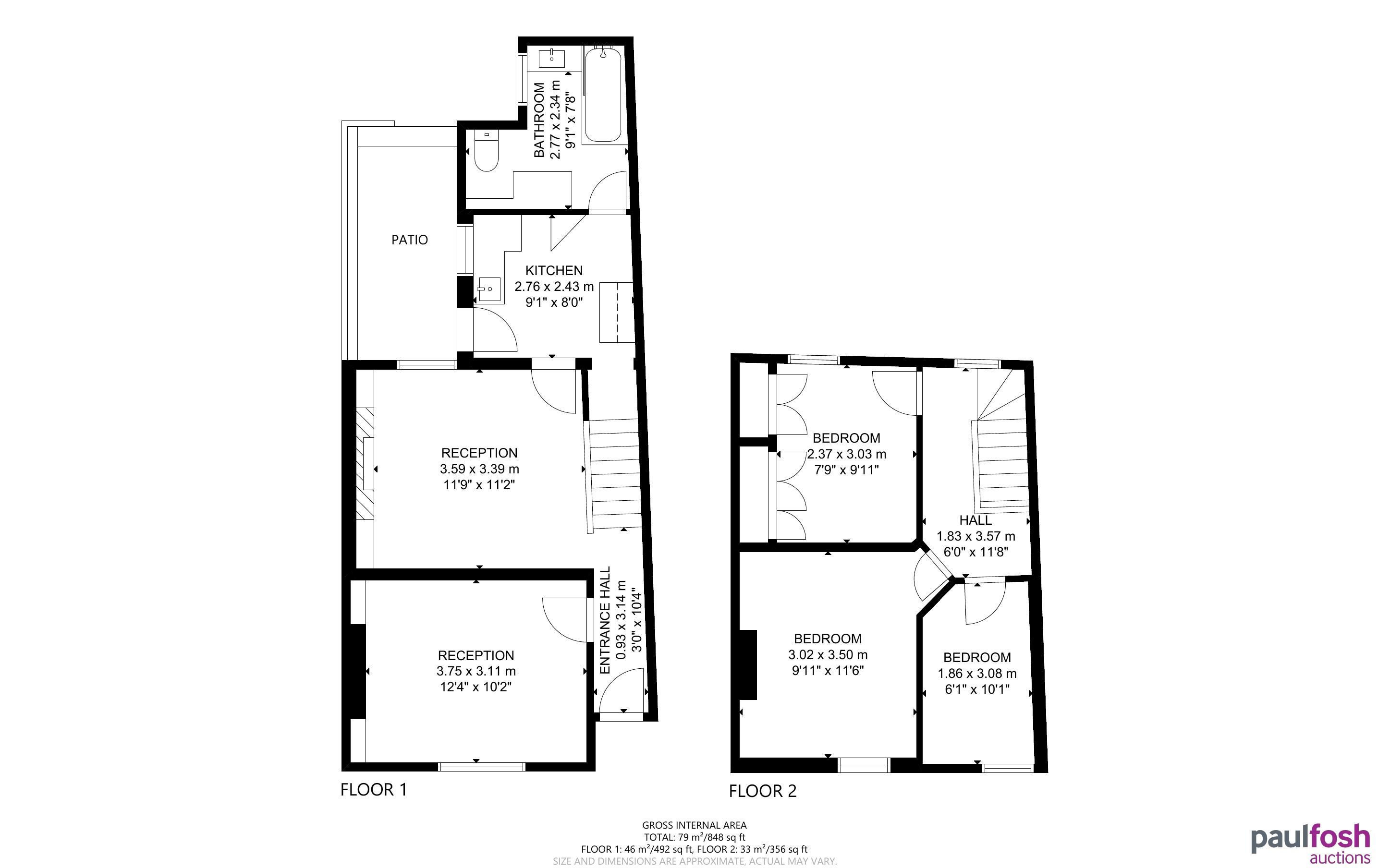 Ground Floor: 2 reception rooms, kitchen, bathroom