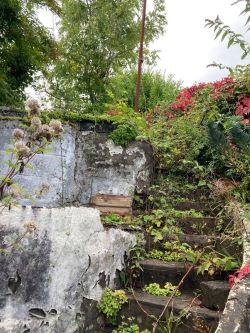 To the rear of the property is a sloped garden and garage