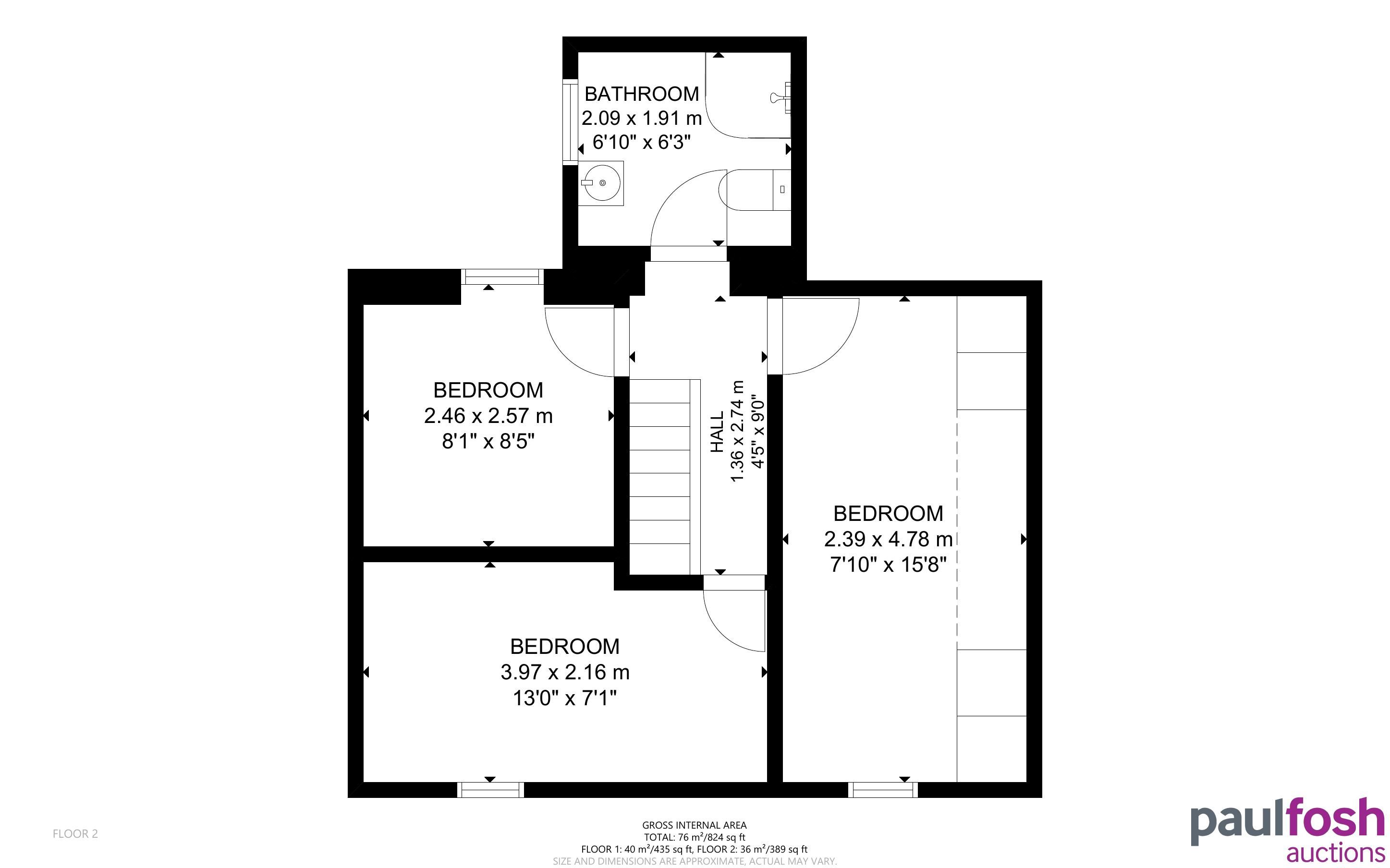 First Floor: 3 bedrooms, shower room