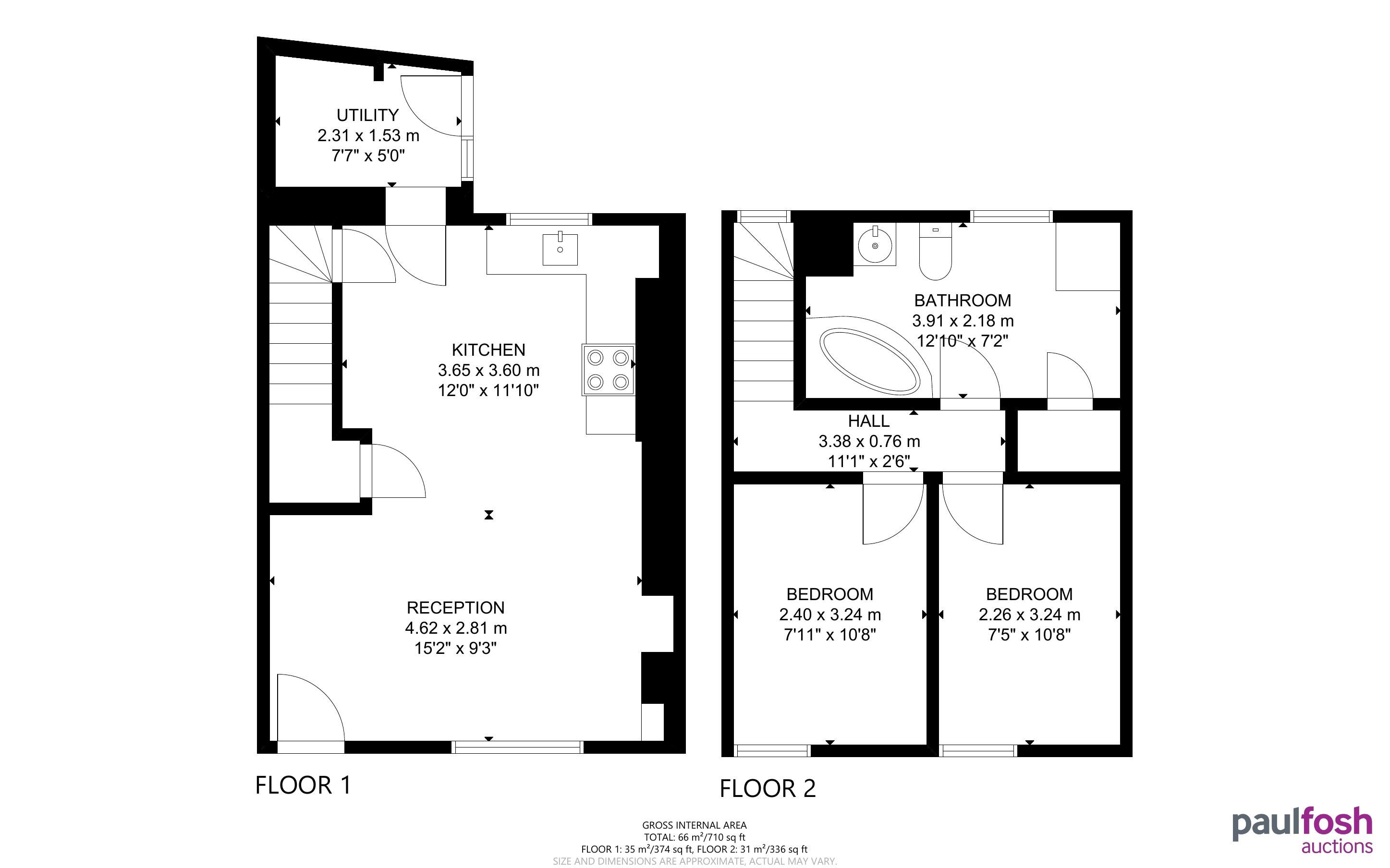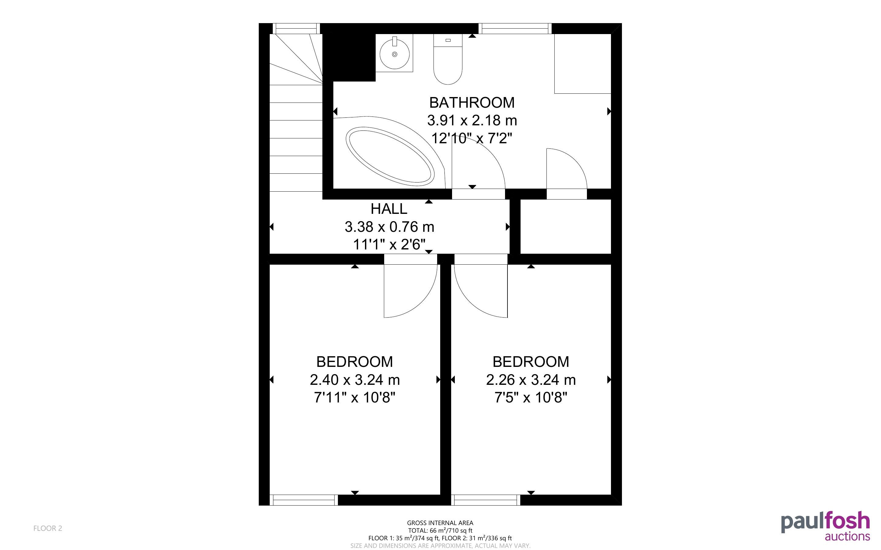First Floor: 2 bedrooms, bathroom