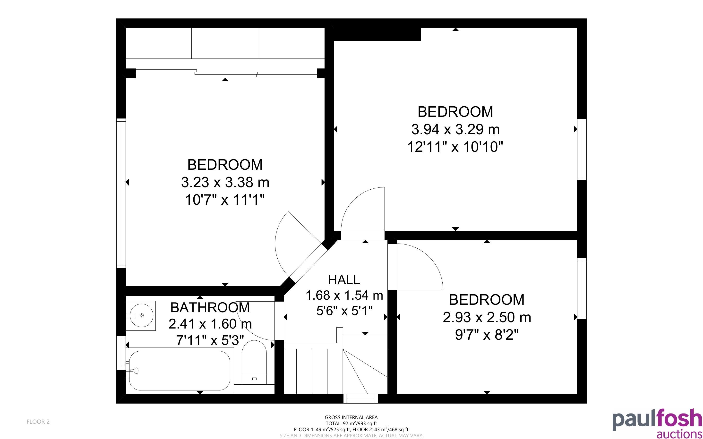 First Floor: Landing, 3 bedrooms, bathroom