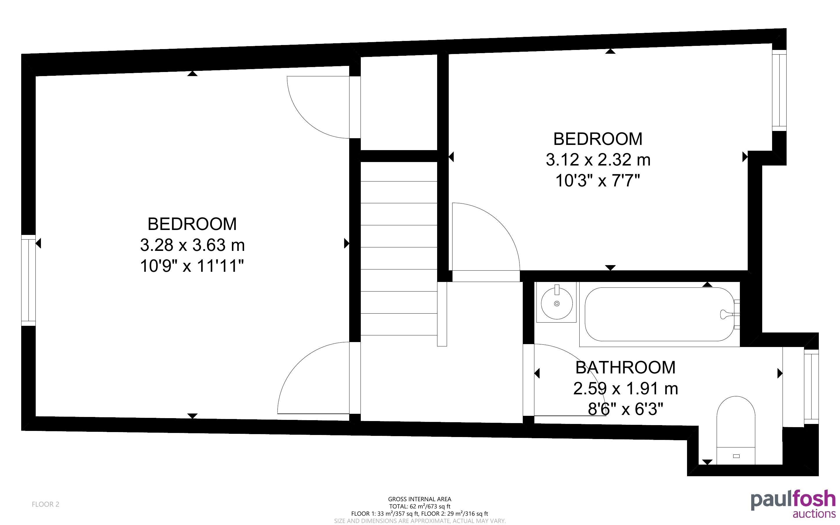 First Floor: Landing, 2 bedrooms, bathroom