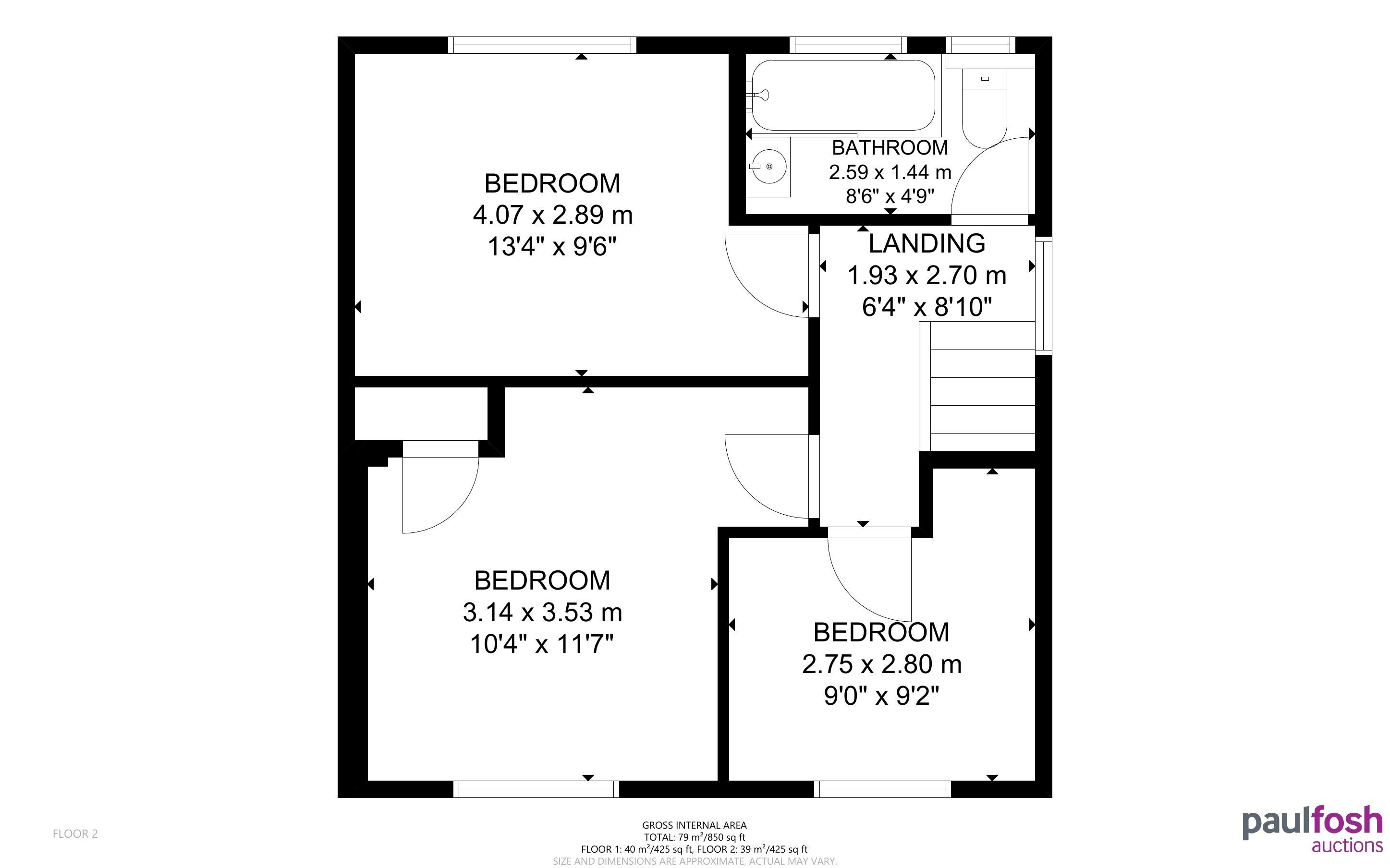 First Floor: 3 bedrooms, bathroom