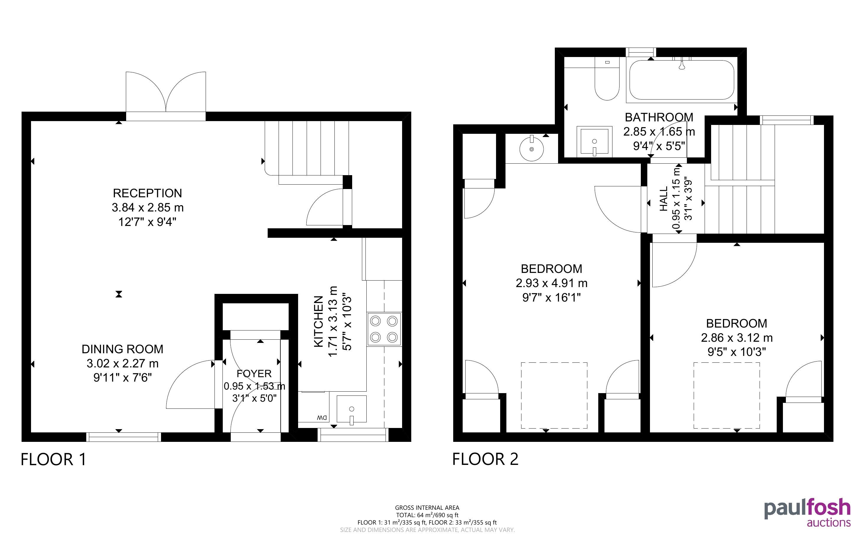 First Floor: Landing, 2 bedrooms, bathroom