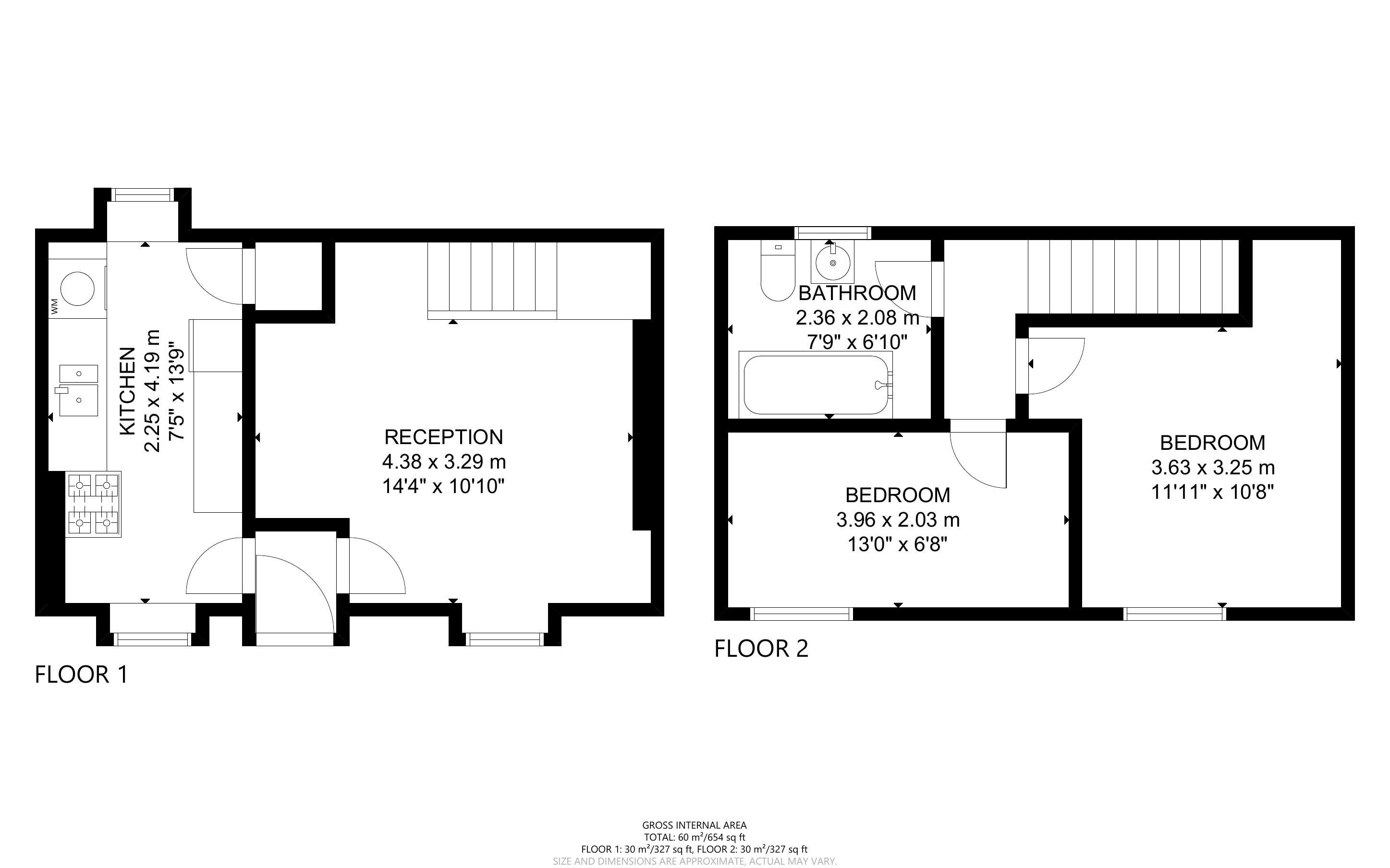 First Floor: 2 bedrooms, bathroom