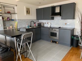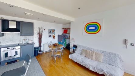 Top Floor Apartment: Hallway and staircase, open plan lounge/kitchen/dining area, landing, 2 double bedrooms with storage, bathroom & airing cupboard