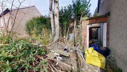 Outside: Front, side and rear gardens, timber summer house (dilapidated), hardstanding parking area with access via rear lane