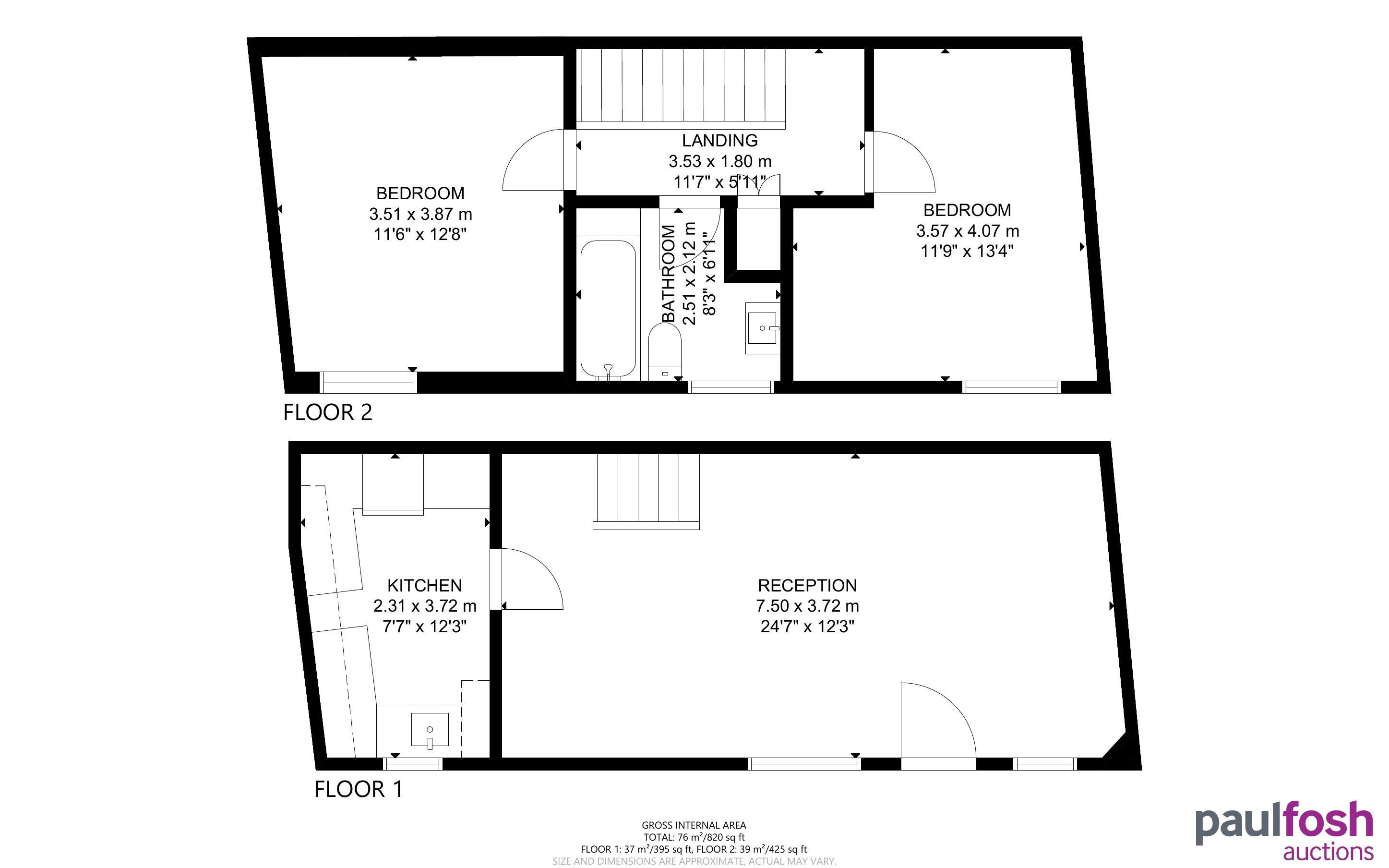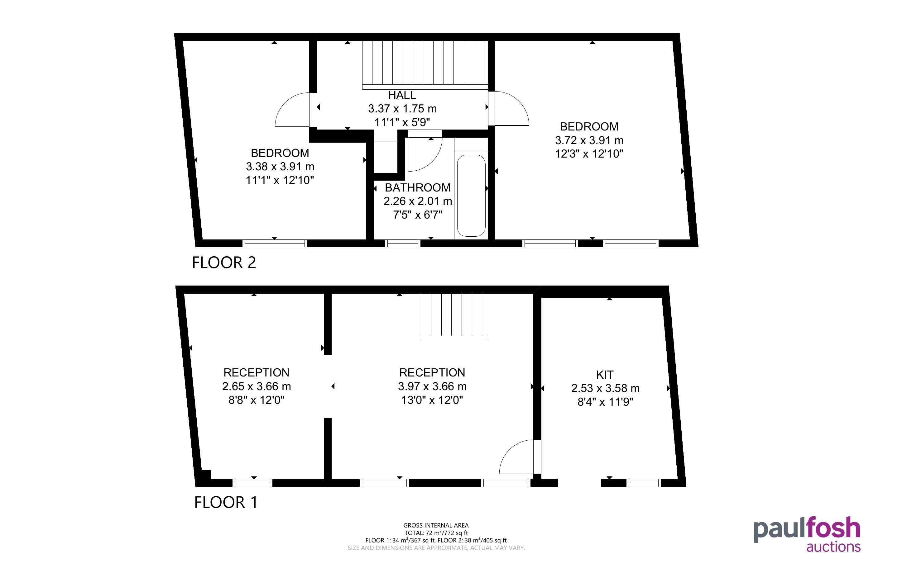 First Floor: Two bedrooms, bathroom (TBC)