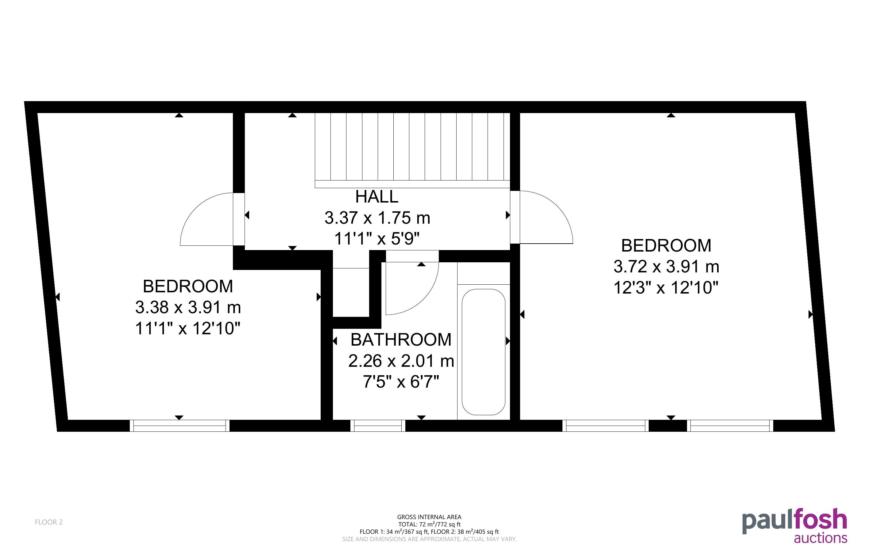 First Floor: 2 bedrooms, bathroom