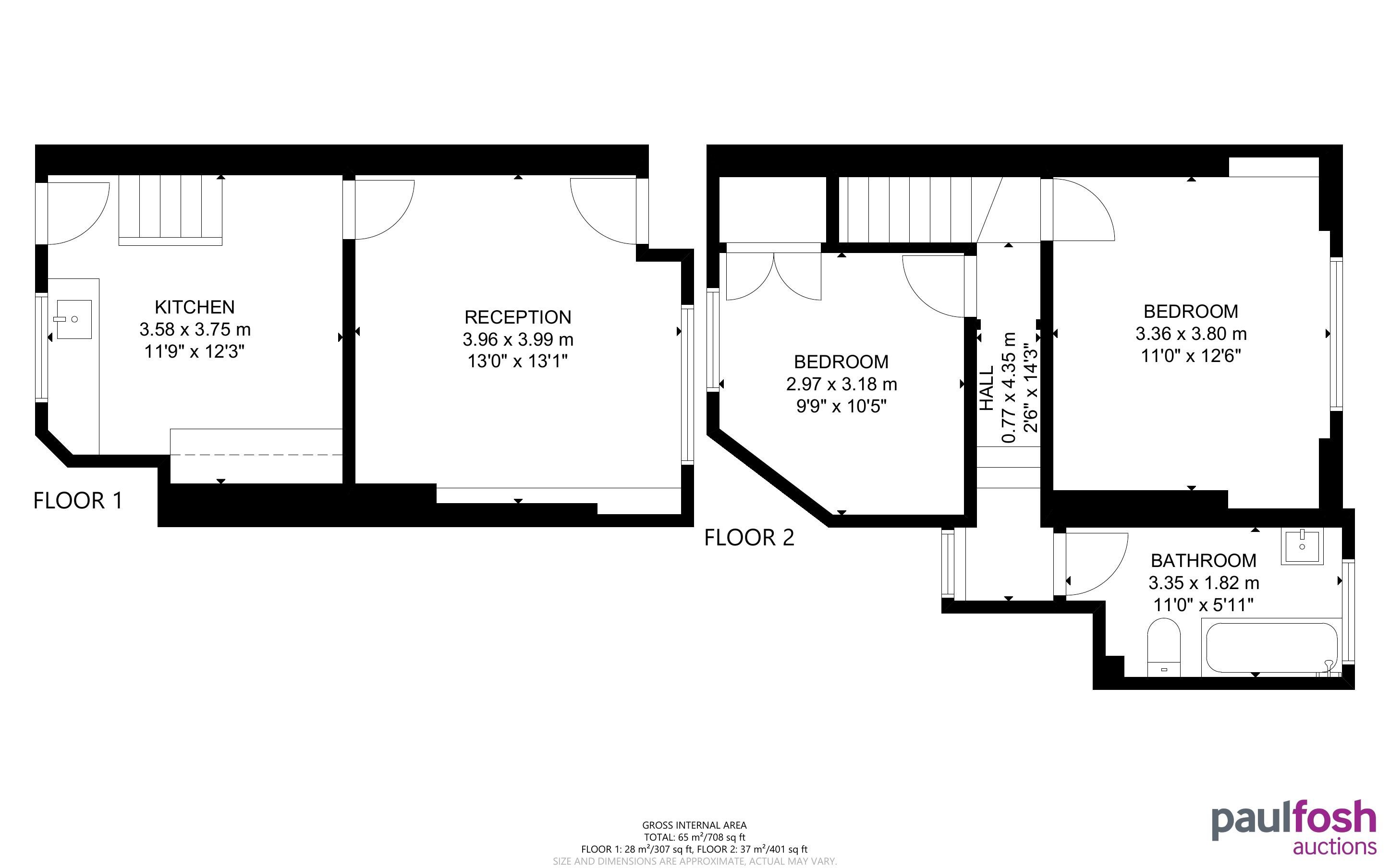 First floor: 2 bedrooms, bathroom