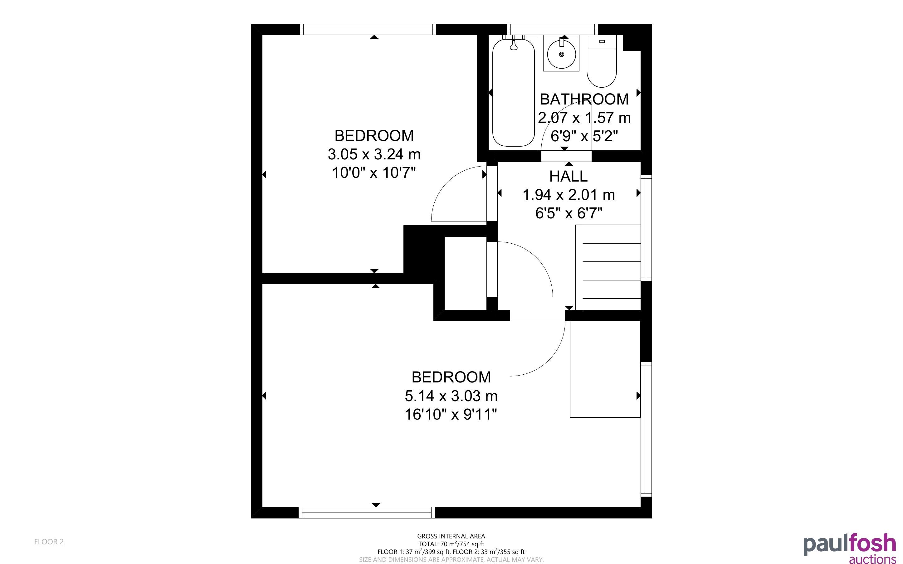 First Floor: 2 bedrooms, bathroom