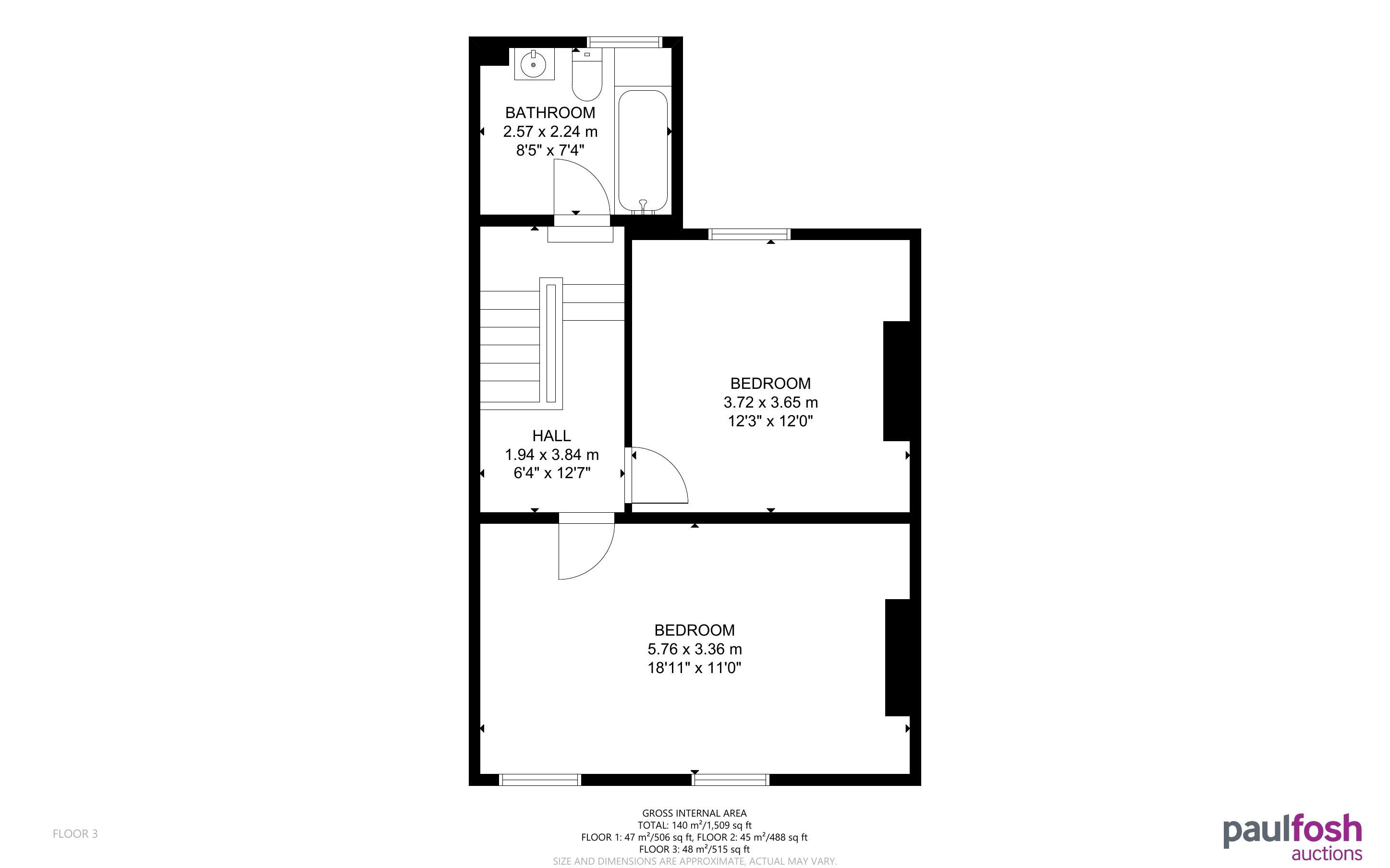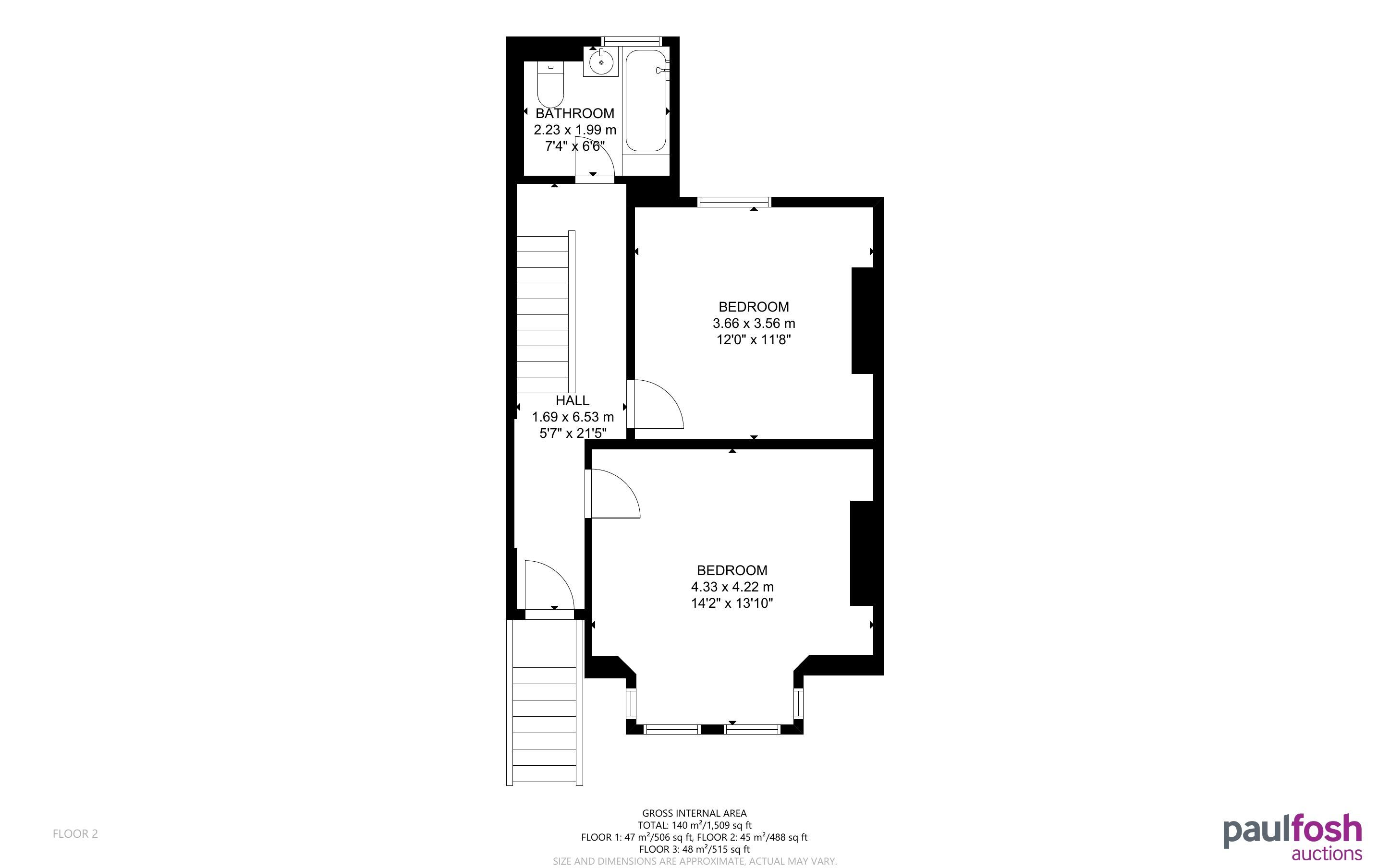 First Floor: Landing, 2 bedrooms, bathroom
