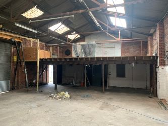 Access via roller shutter door with ground floor and mezzanine and w/c, further roller door to rear with access to enclosed yard