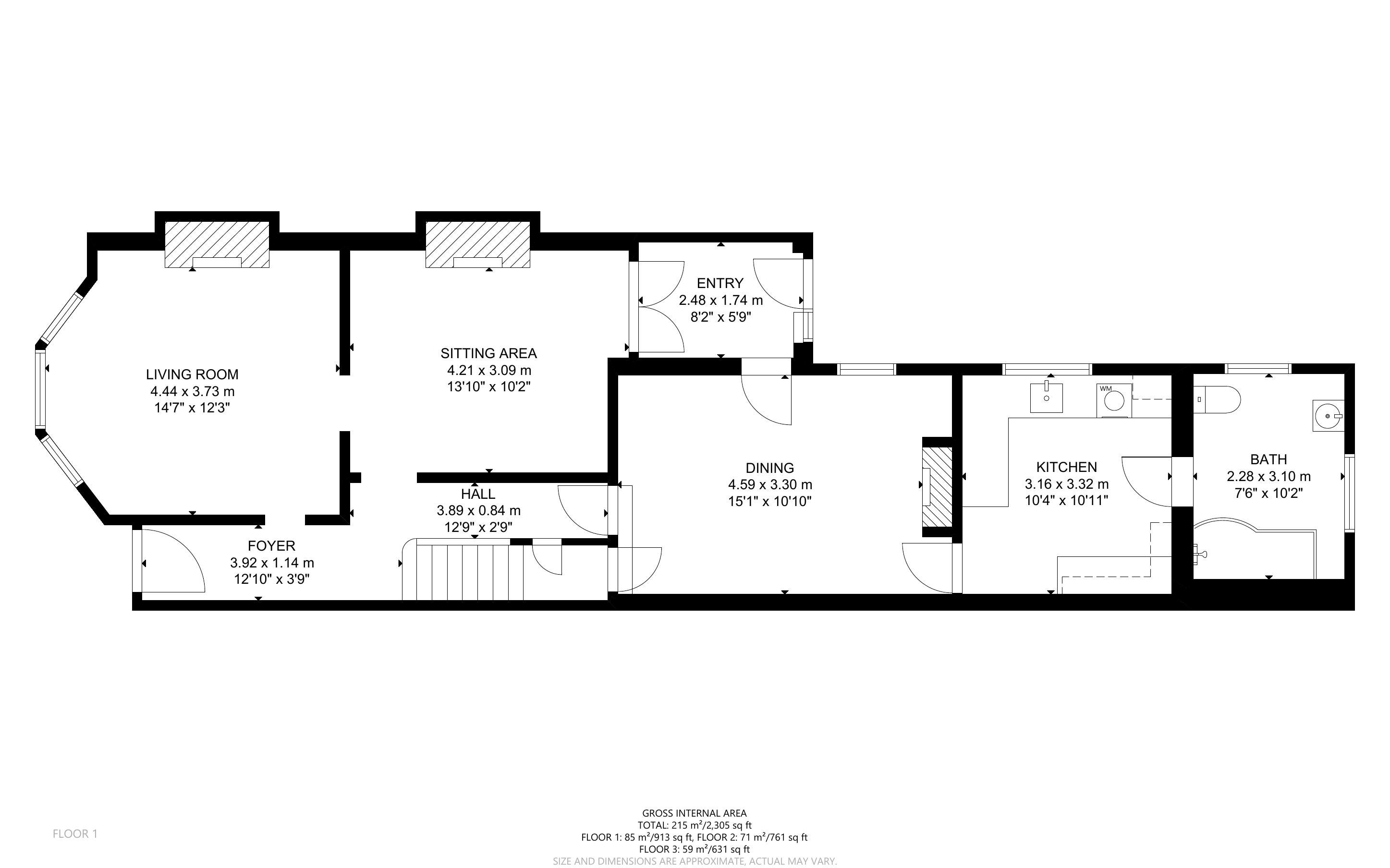 Ground Floor: Entrance, 3 reception rooms, lean to kitchen, bathroom