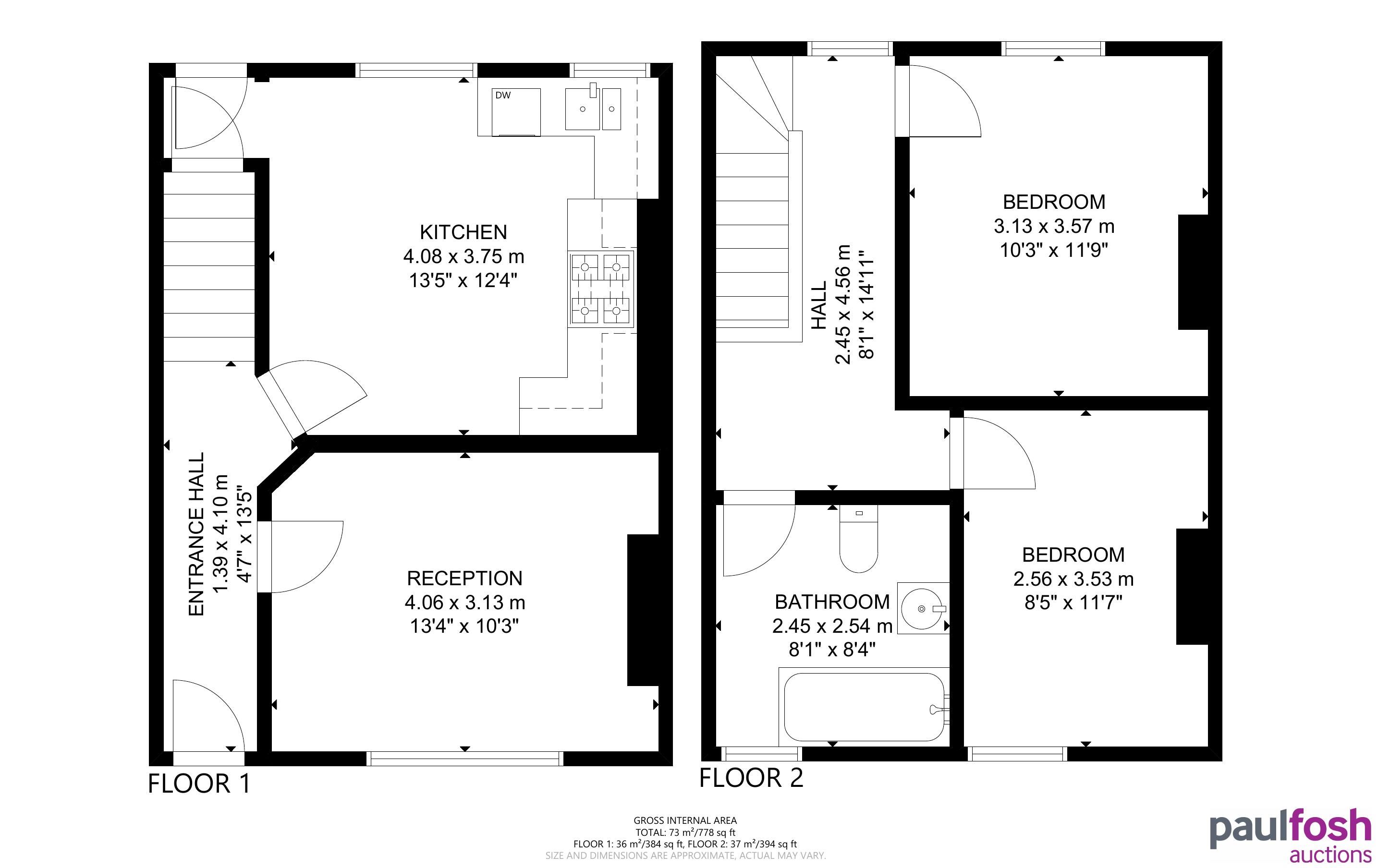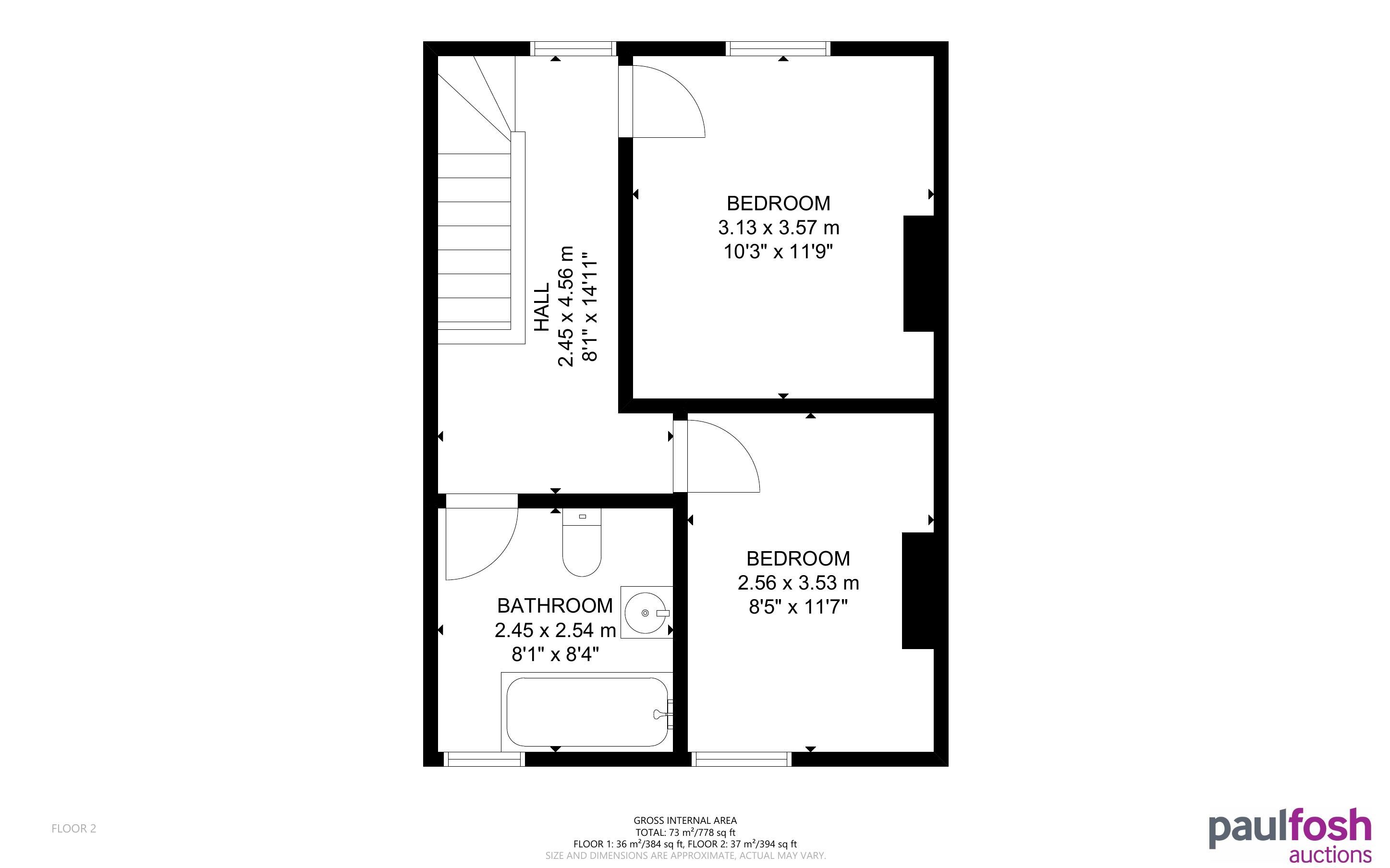 First Floor: Landing, 2 bedrooms, bathroom
