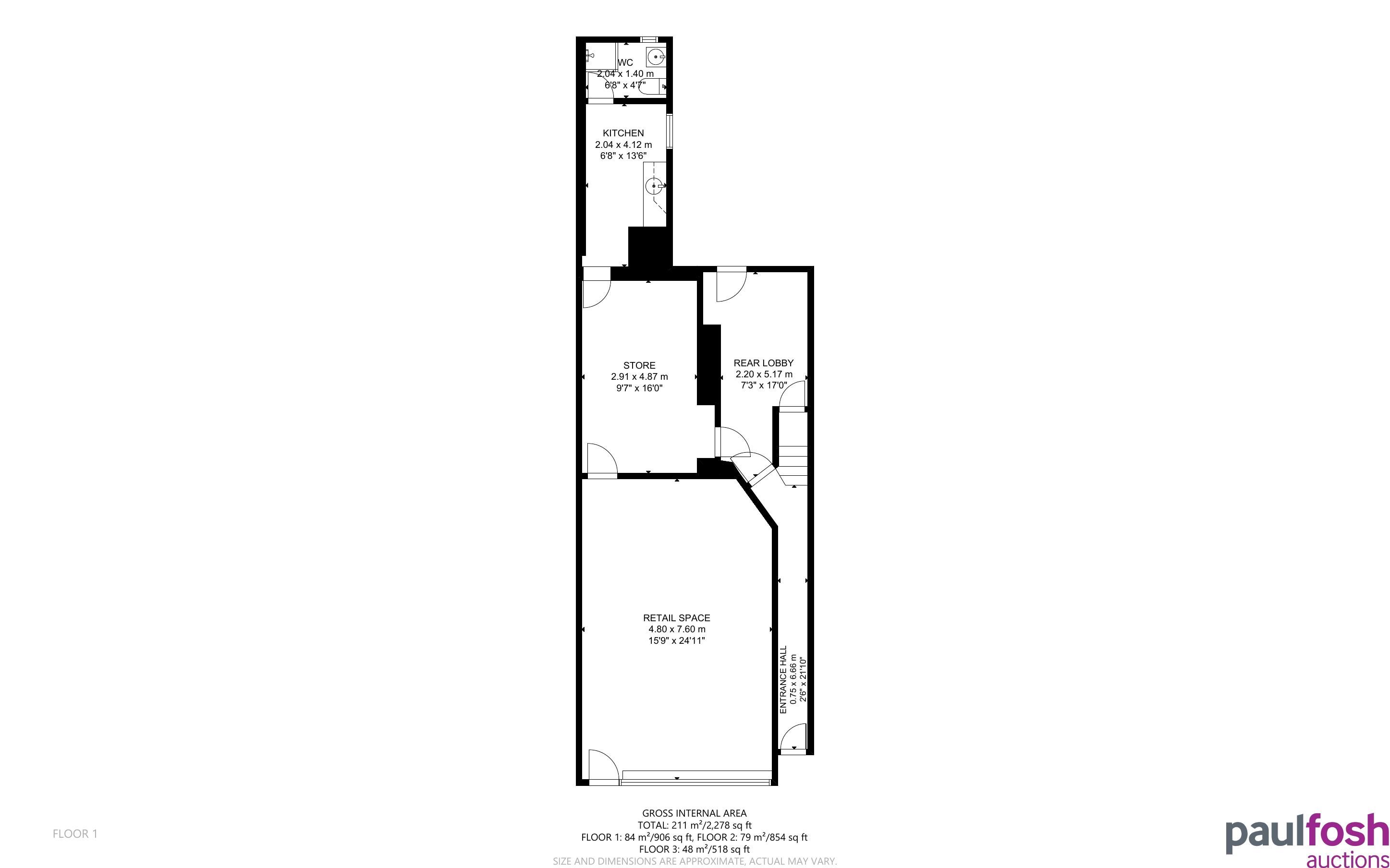 Ground Floor: Shop/office unit storeroom/office kitchen shower room