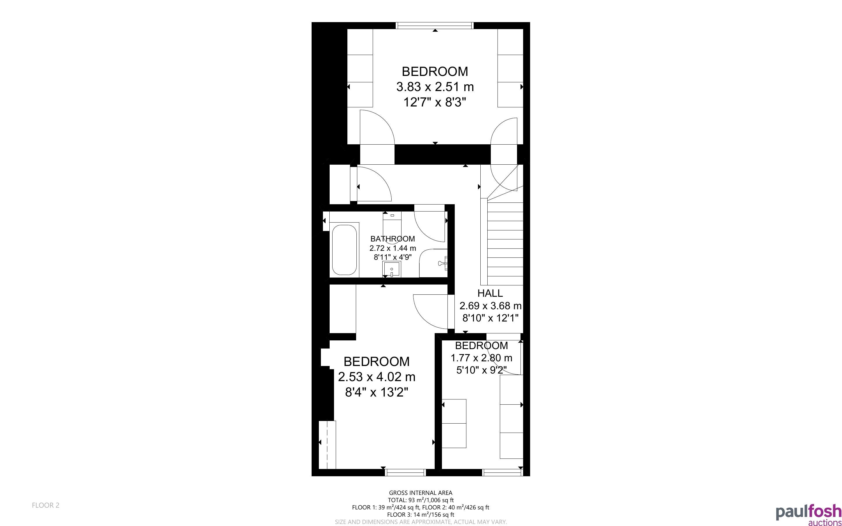 First Floor: 3 bedrooms, bathroom