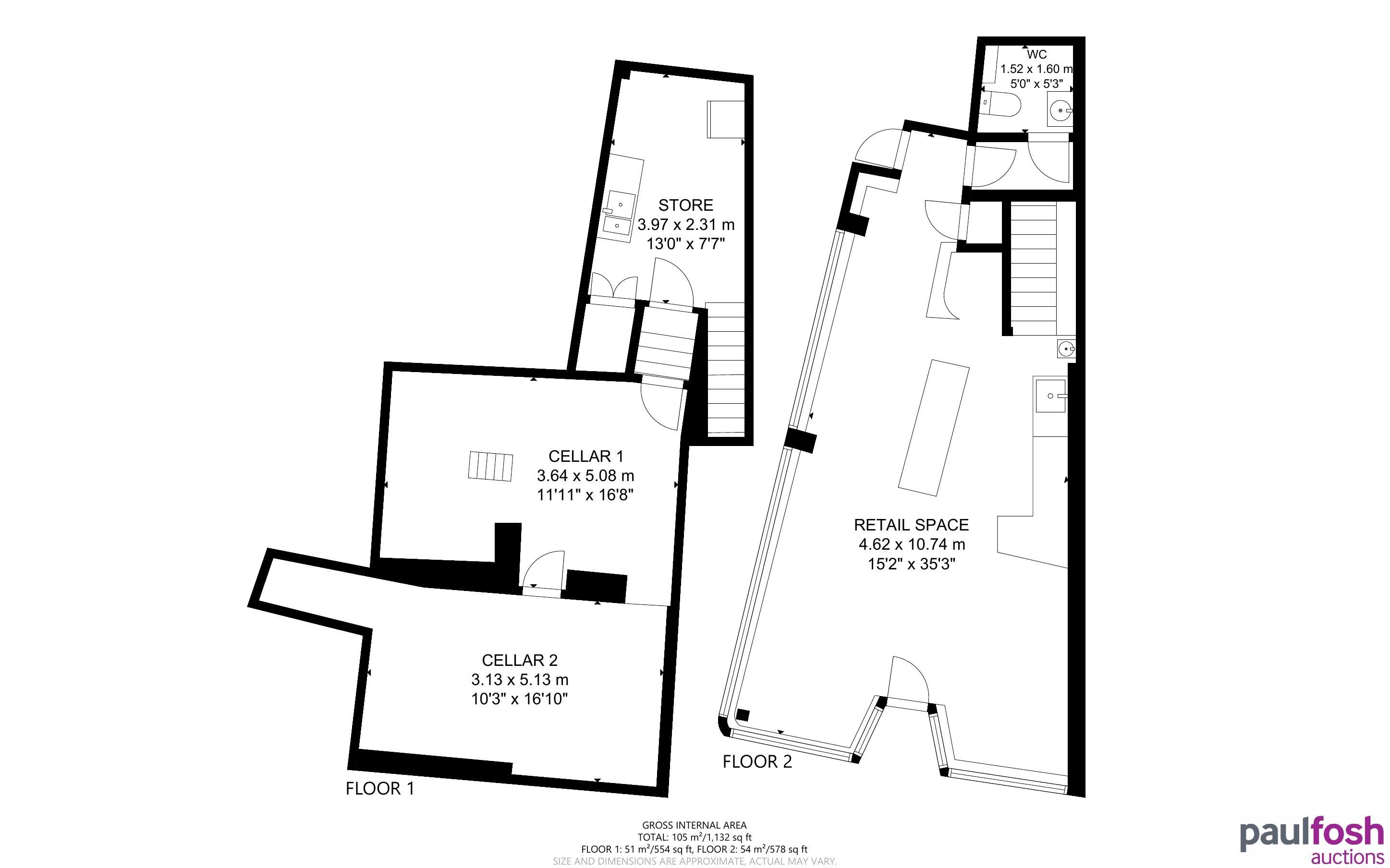 | Ground (retail unit/cafe) | Former café with seating area and serving counter, rear kitchen and prep room and access to cellar | prev let at £650 pcm (£7,800 pa) |