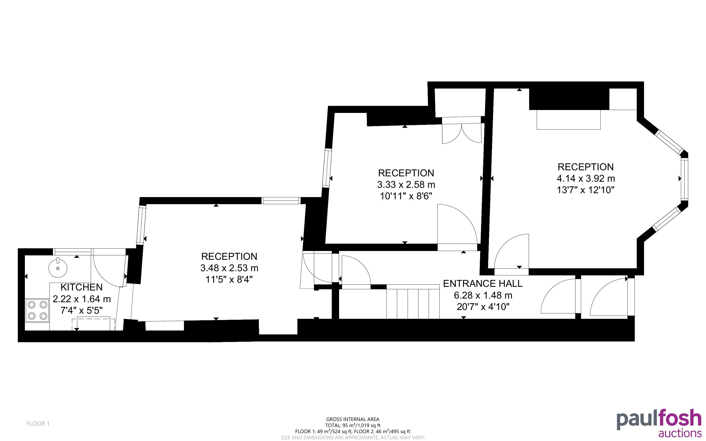 Ground Floor: Entrance, 3 reception rooms, kitchen