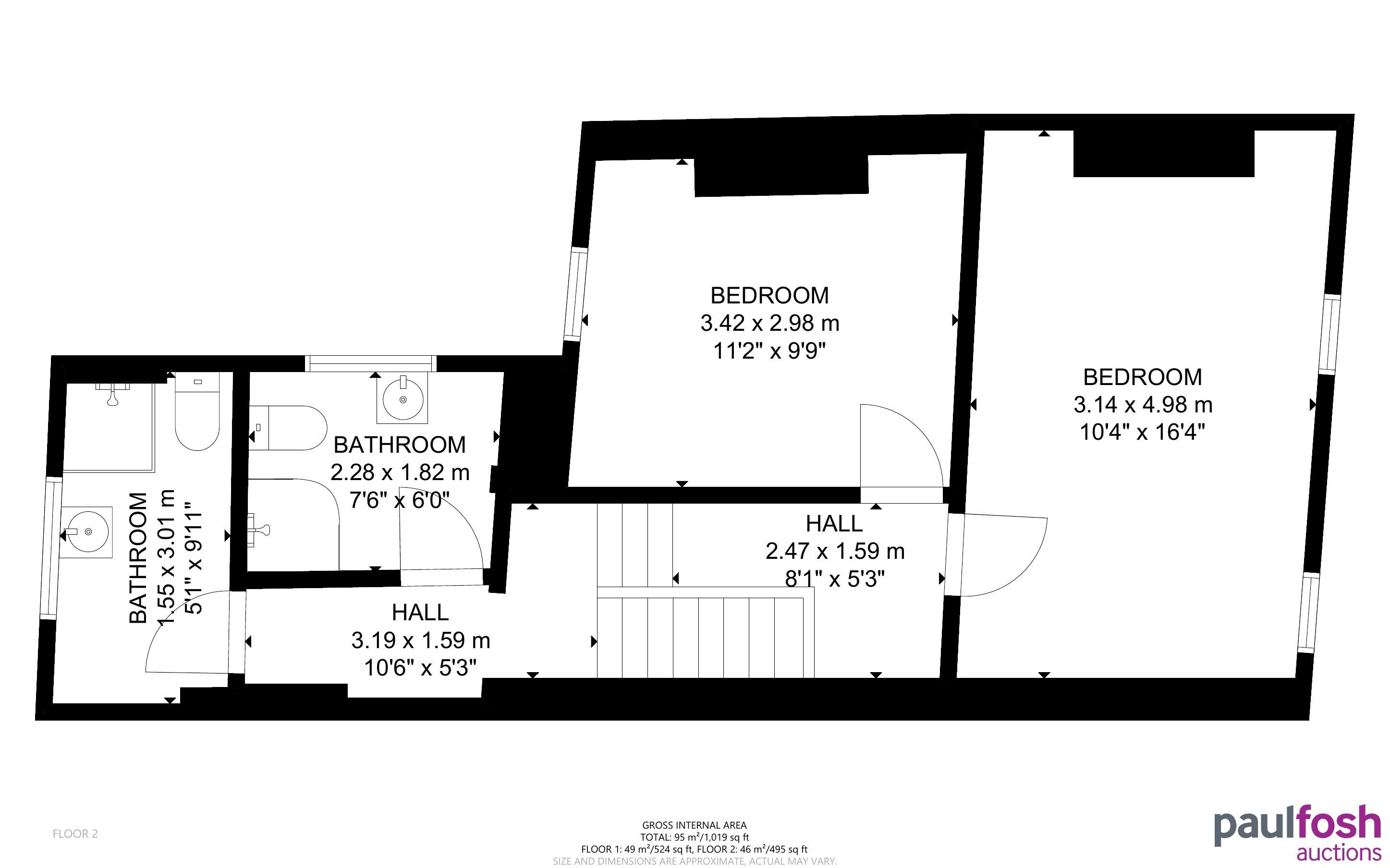 First Floor: Landing, 2 bedrooms, shower room/wc x 2