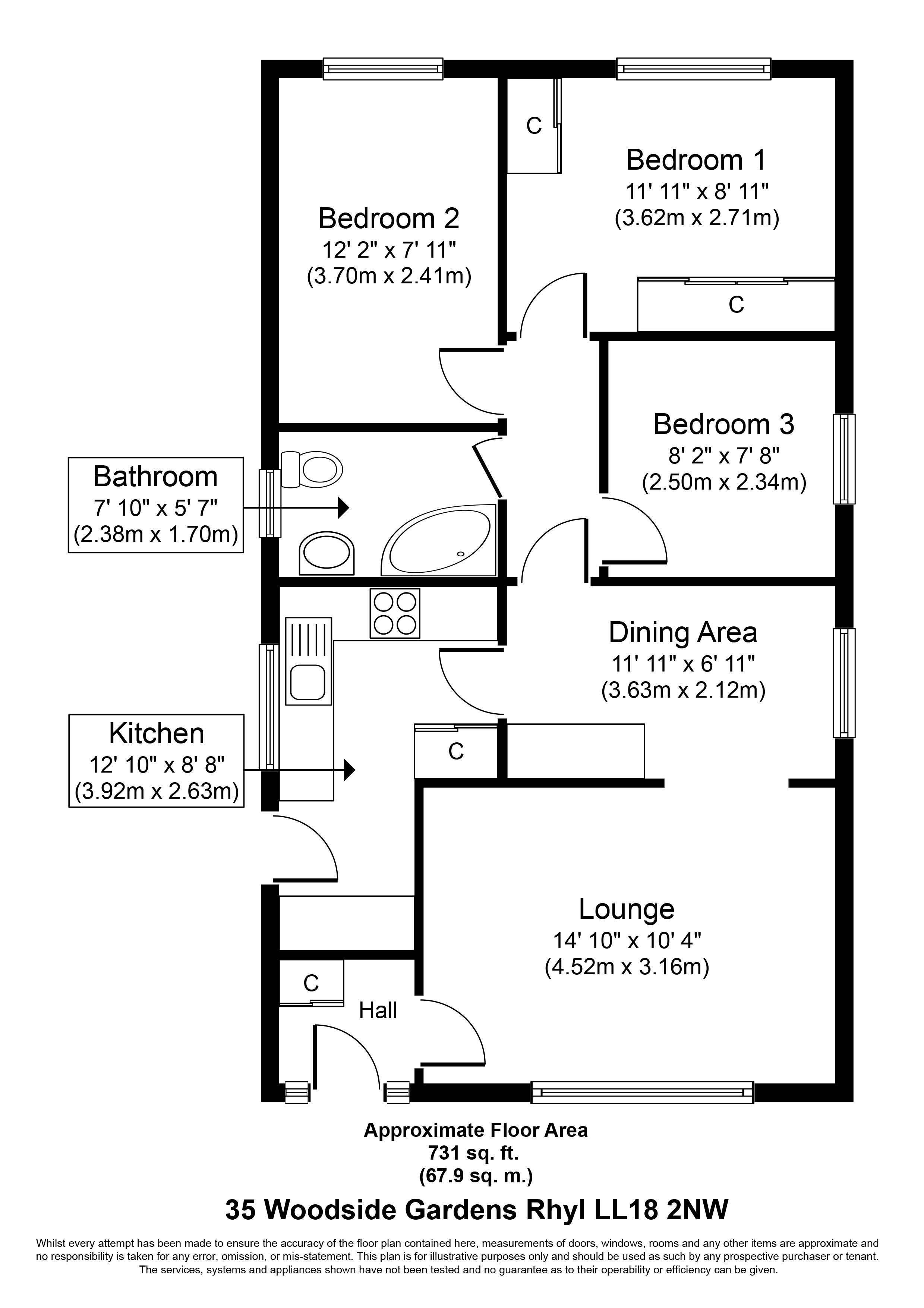 Ground Floor: Lounge/dining room, kitchen, bathroom, 3 bedrooms