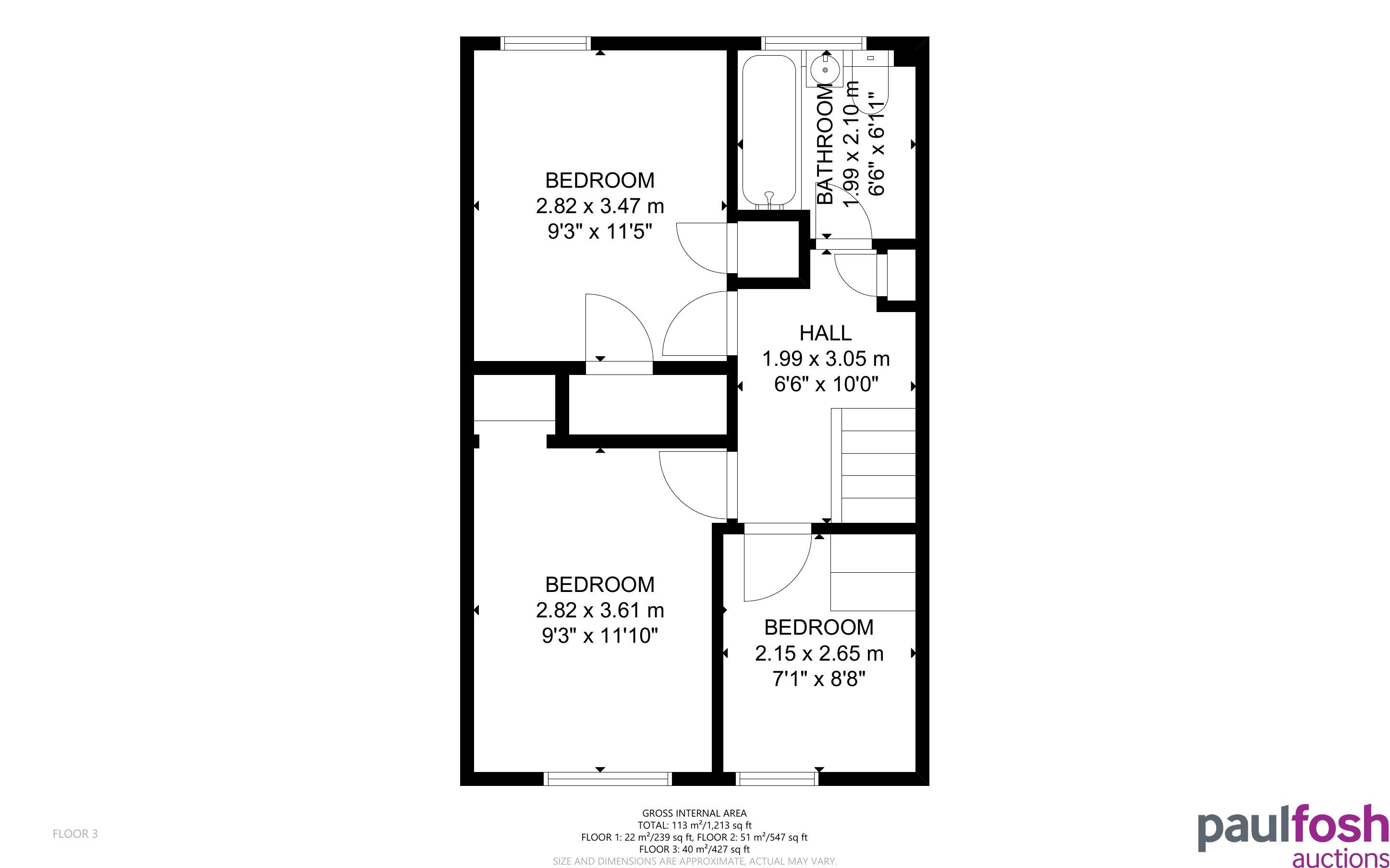 Second Floor: Landing, 3 bedrooms, bathroom