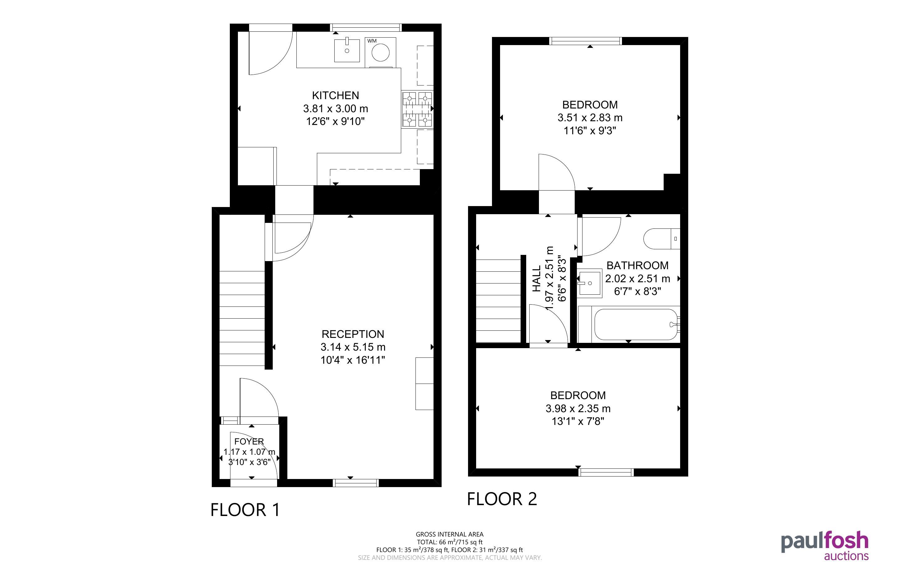 First Floor: Landing, 2 bedrooms, bathroom
