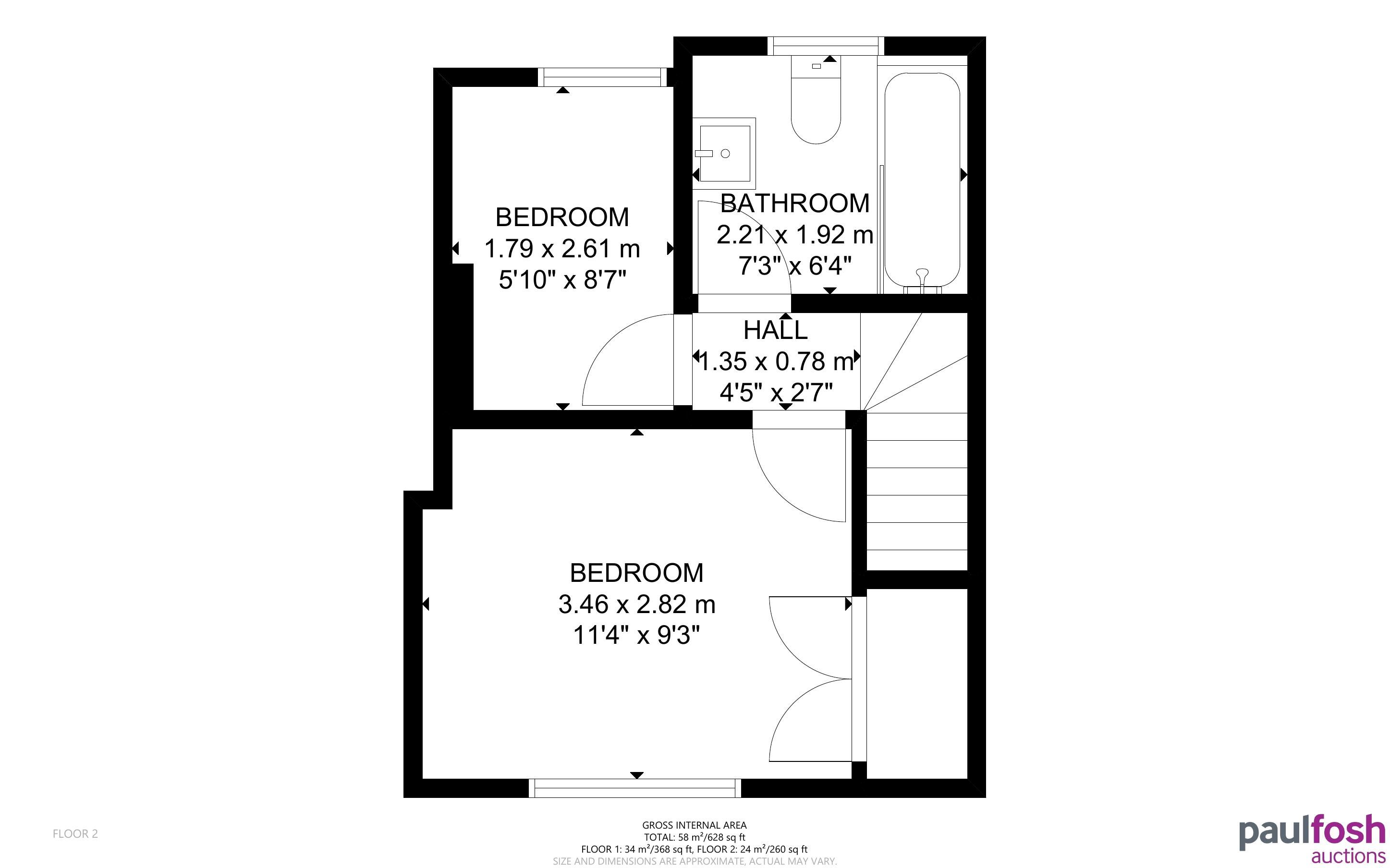 First Floor: Landing, 2 bedrooms, bathroom