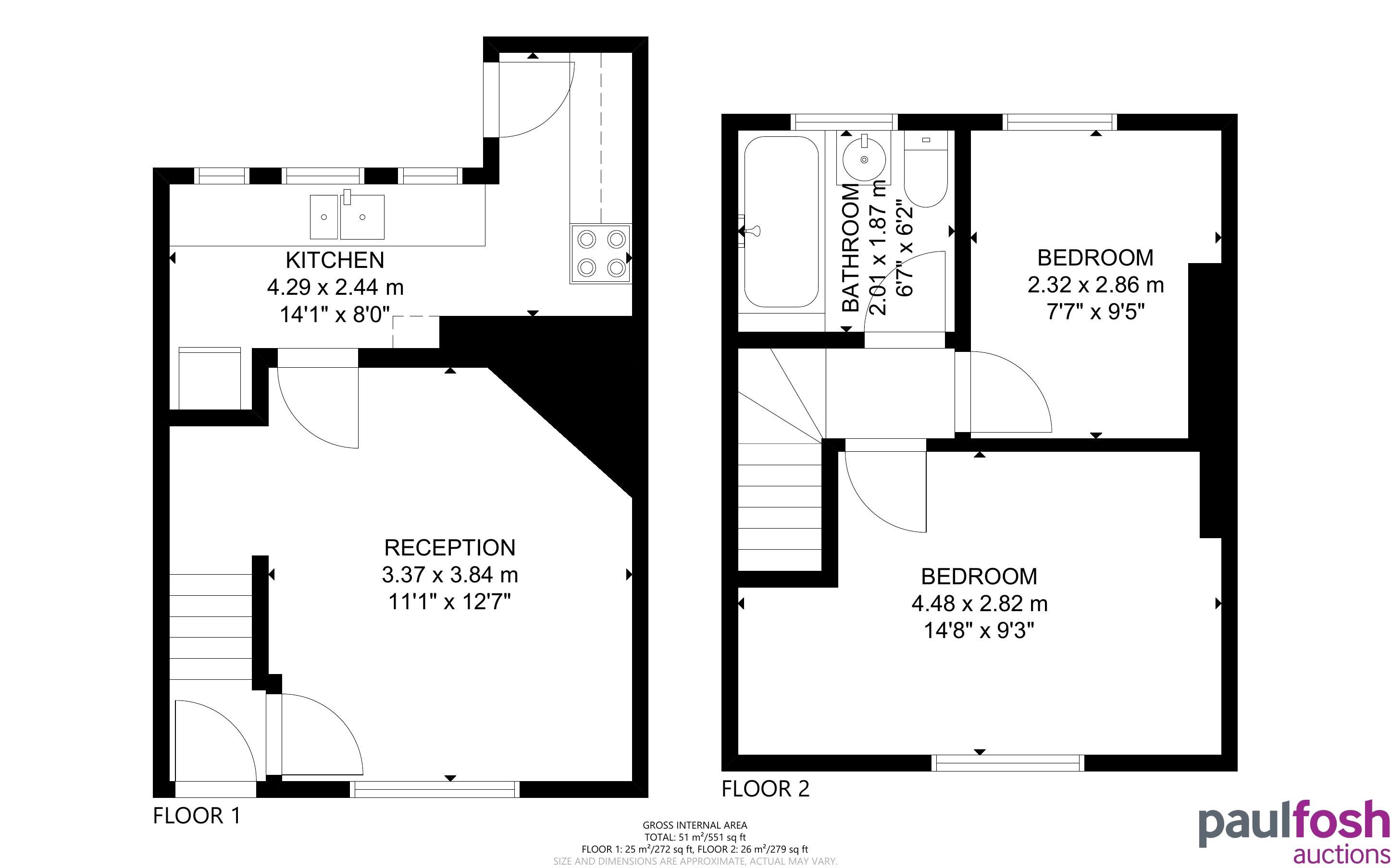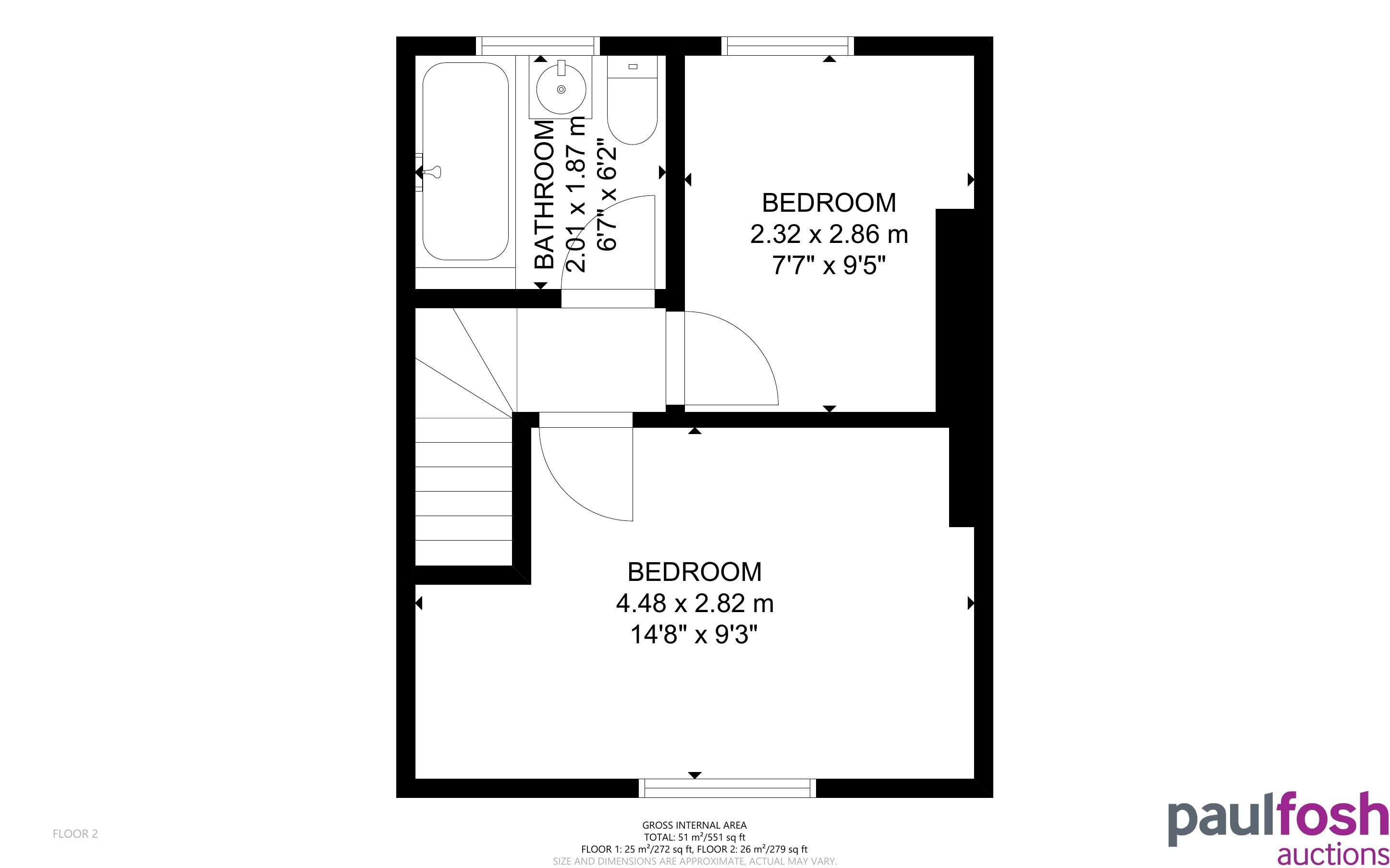 First Floor: 2 bedrooms, bathroom