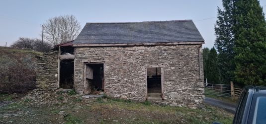 An attractive stone built barn under a part tiled roof. The village of Pant-y-Dwr is situated centrally between the market town of Rhayader, Llanidloes and the Elan Valley. The barn has planning for conversion to a two bedroom unit for accommodation for tourism use and has its own new water supply and electricity supply which has cost in excess of £20,000.