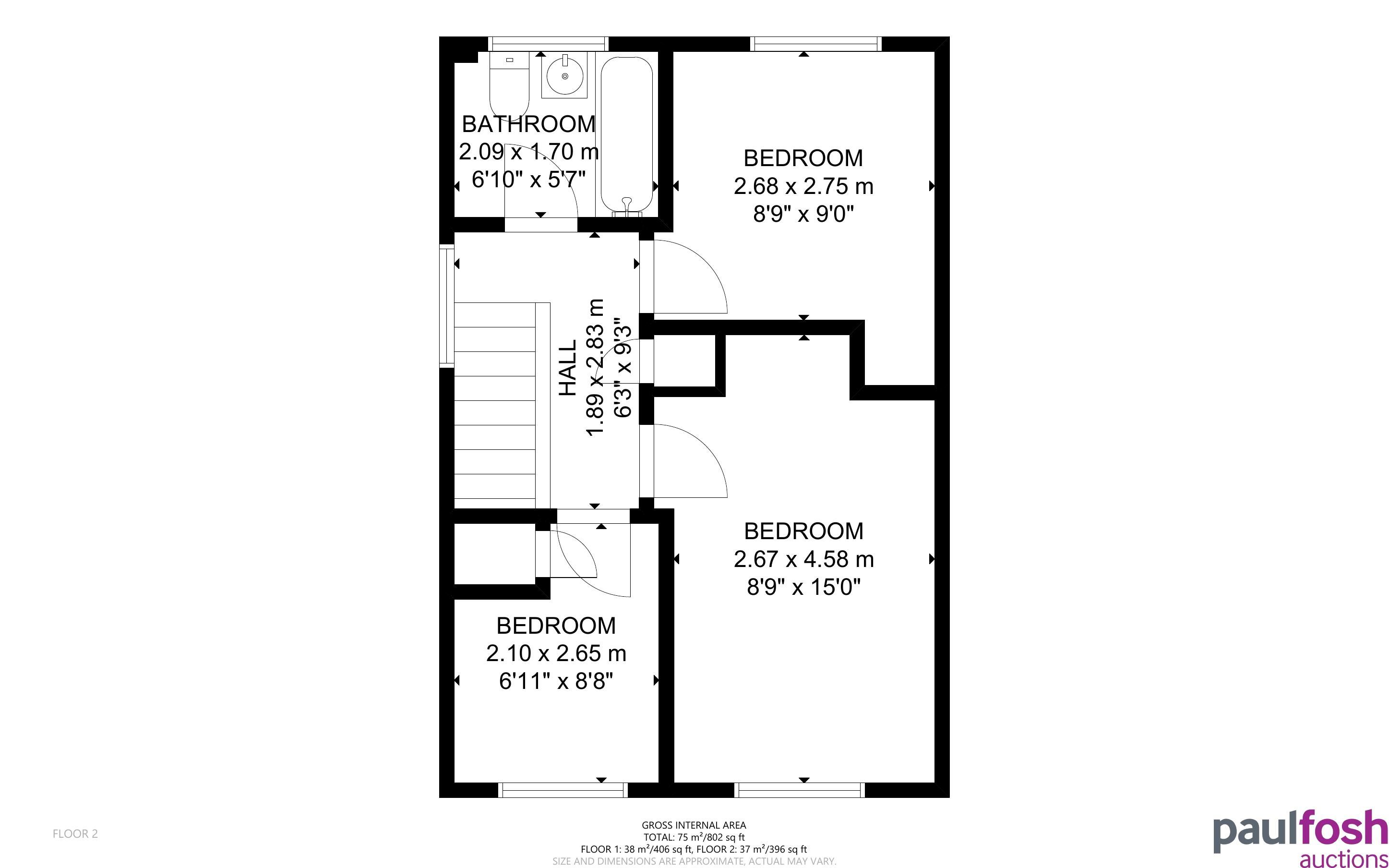 First Floor: Landing, 3 bedrooms, bathroom