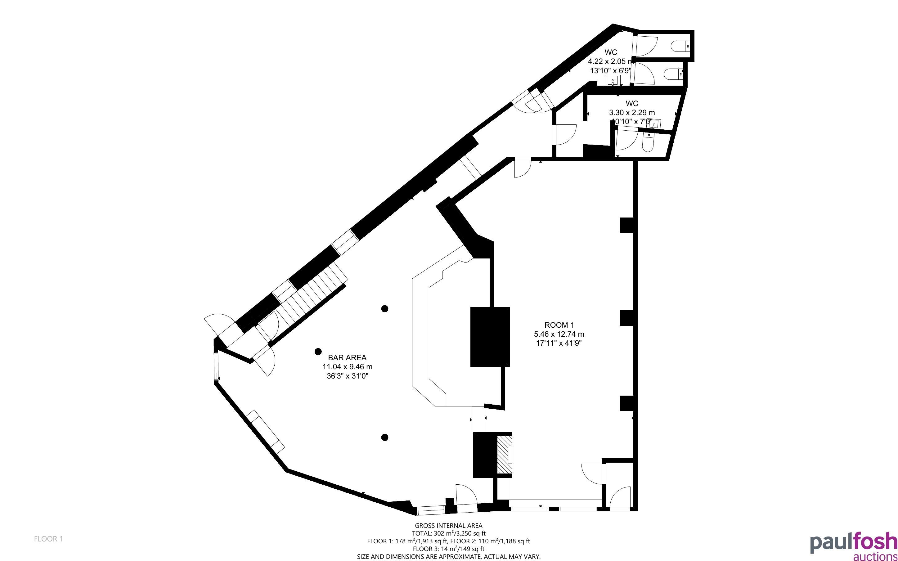 | Ground Floor | Bar Area | 1,124.18 | 104.44 |