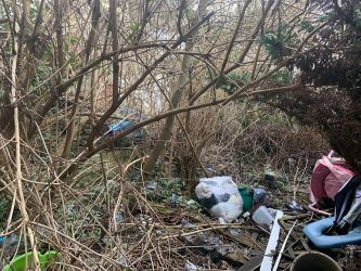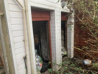 Outside: Rear garden (overgrown) with side and rear lane access