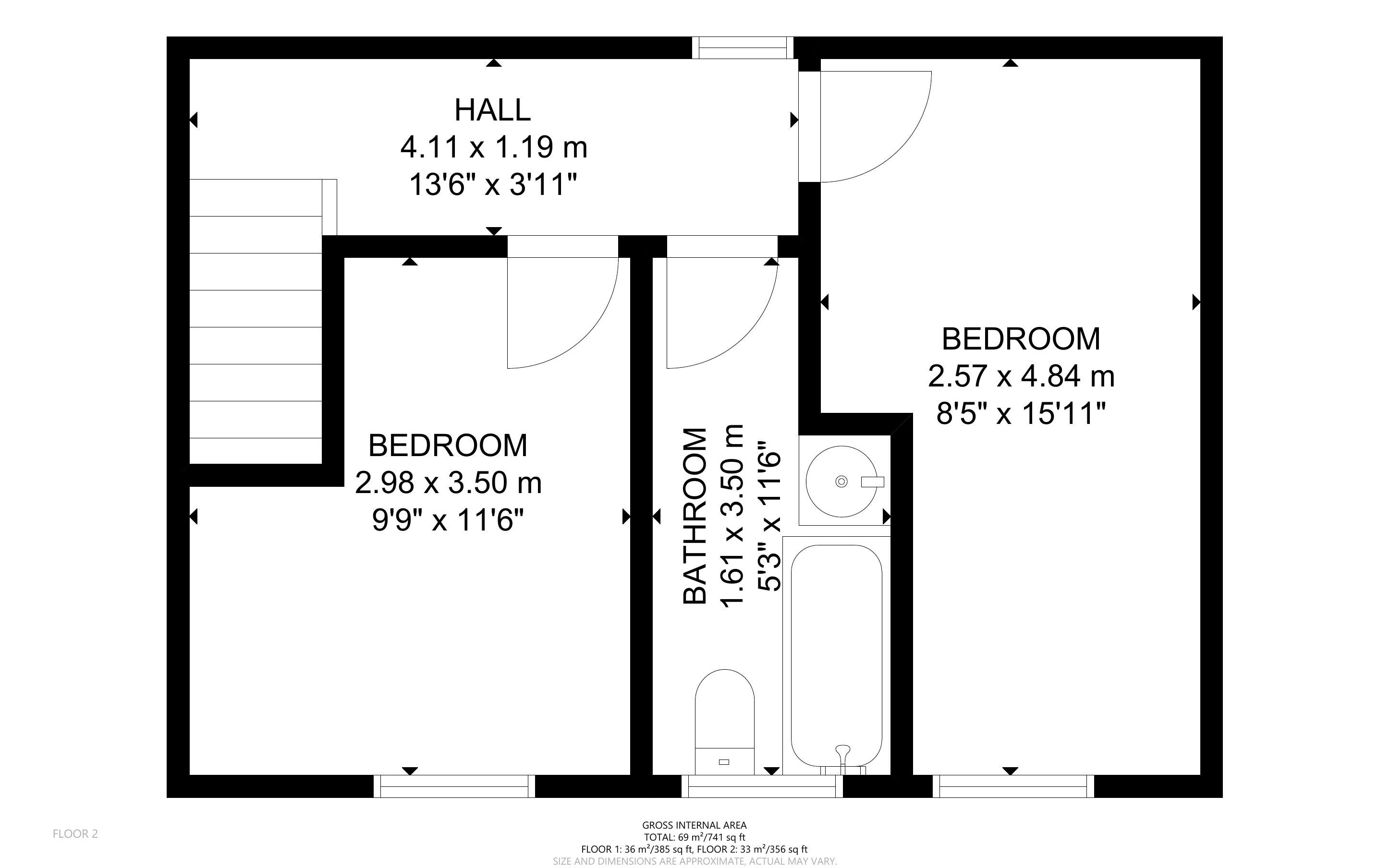 First Floor: Landing, 2 bedrooms, bathroom