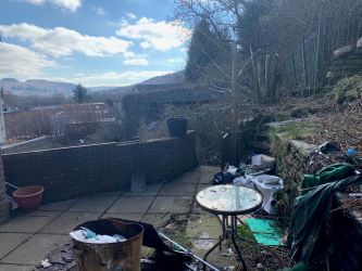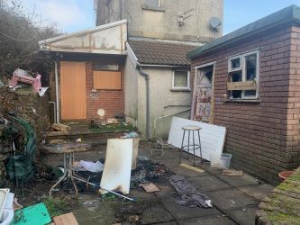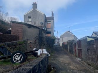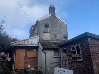 A detached house situated on a good sized plot to include large commercial use garage (previously used for car repairs), garden and parking for several vehicles. The property which benefits from far reaching hillside views has suffered fire damage and is currently boarded up. We are informed the interior consists of an open plan lounge/dining room, kitchen, lean to utility area, bathroom and 3 bedrooms (originally 4), plus attic room.